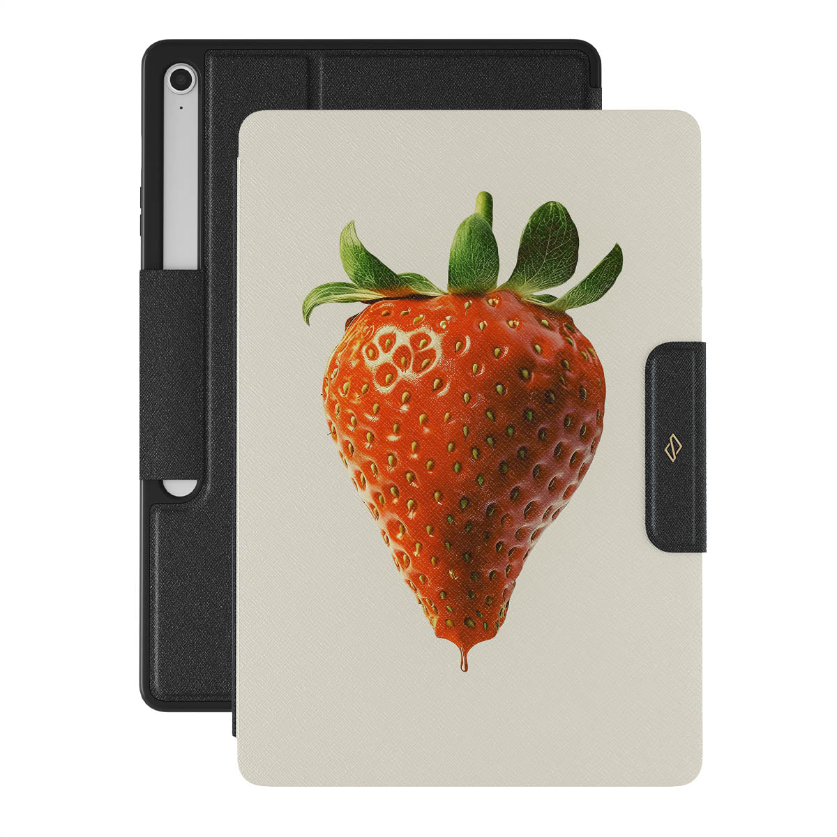 This design features: strawberry.