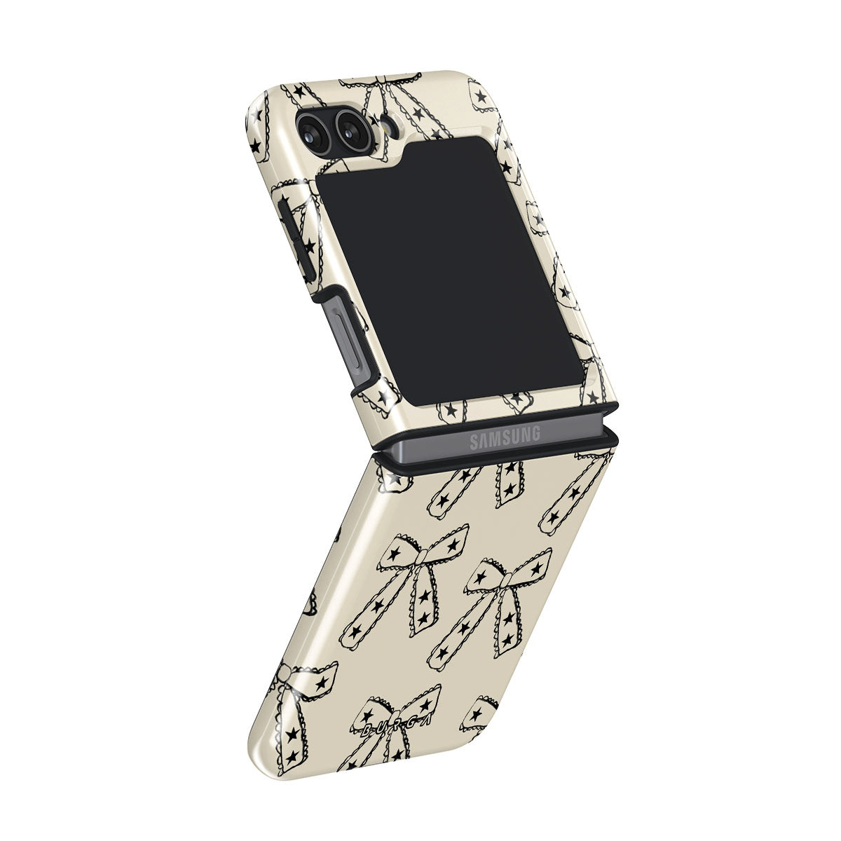 Shine on, Lone Star. Starry bows on a beige background bring a fun twist to your look. This Samsung Galaxy Z Flip 5 phone case design is ideal for those who march to the beat of their own drum and make their own fashion rules.