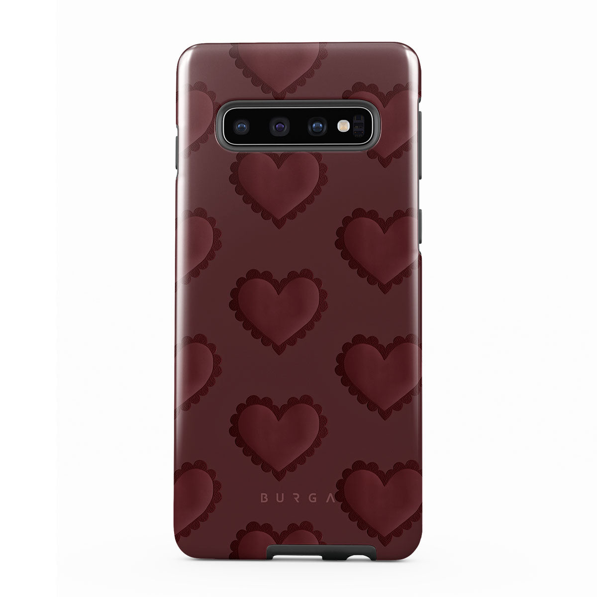This Samsung Galaxy S10 Plus phone case design is a bold declaration for those addicted to the rush of love. Deep red hearts stitched like scars of passion, Loveholic wears its emotions on its sleeve. It’s messy, intense, and intoxicating—a celebration of those who live for the thrill of surrendering completely to what sets their soul on fire.