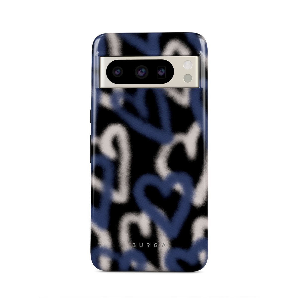 The Lucky You Google Pixel 8 Pro phone case captures the raw, unfiltered pulse of street art. Graffiti hearts in striking blue and white stand out against a black background, their edges softly faded. It’s a design that speaks to the restless who find beauty in chaos and dare to be different.