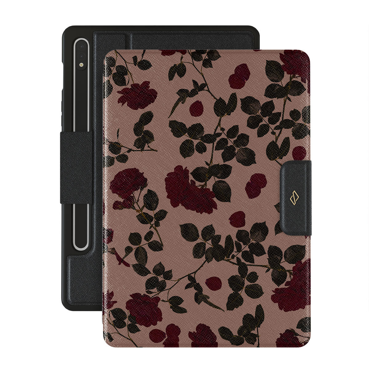 Live out loud as the Main Character with this elegantly bold design that promises a new daily adventure. With deep, rich roses against a pink background, this Samsung Galaxy Tab S10+ folio case design is crafted for the muse in you.