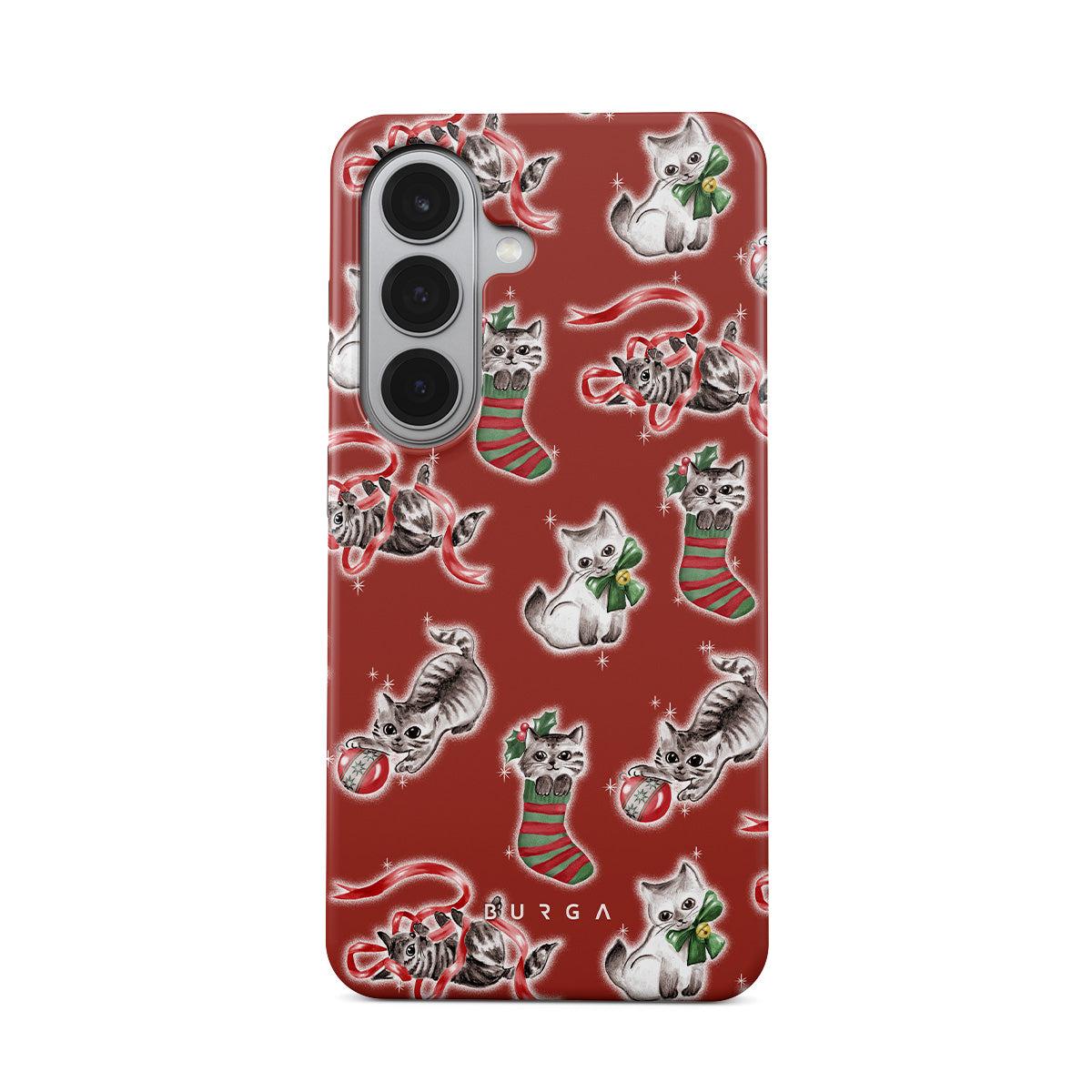 Cats destroying your Christmas decorations since forever. This Samsung Galaxy S26 Plus phone case design honors the tradition.