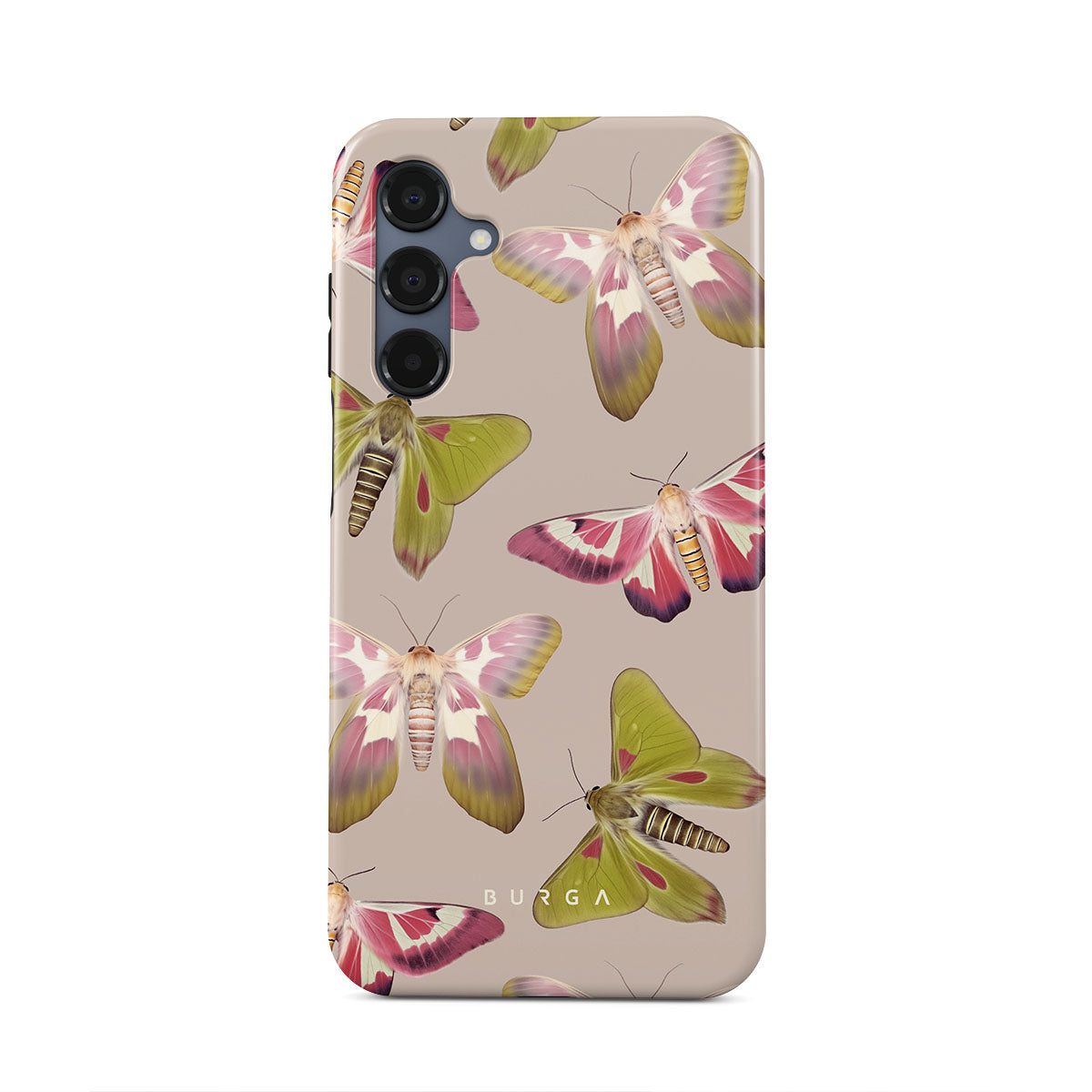 A tapestry of muted-toned moths — their wing patterns echoing tales of transformation and resilience found in nature's delicate beings. These moths, wings wide, serve as silent mentors, teaching us that every phase of life and change holds its own magic and mystery. Discover our Metamorphosis Samsung Galaxy A16 phone casedesign.