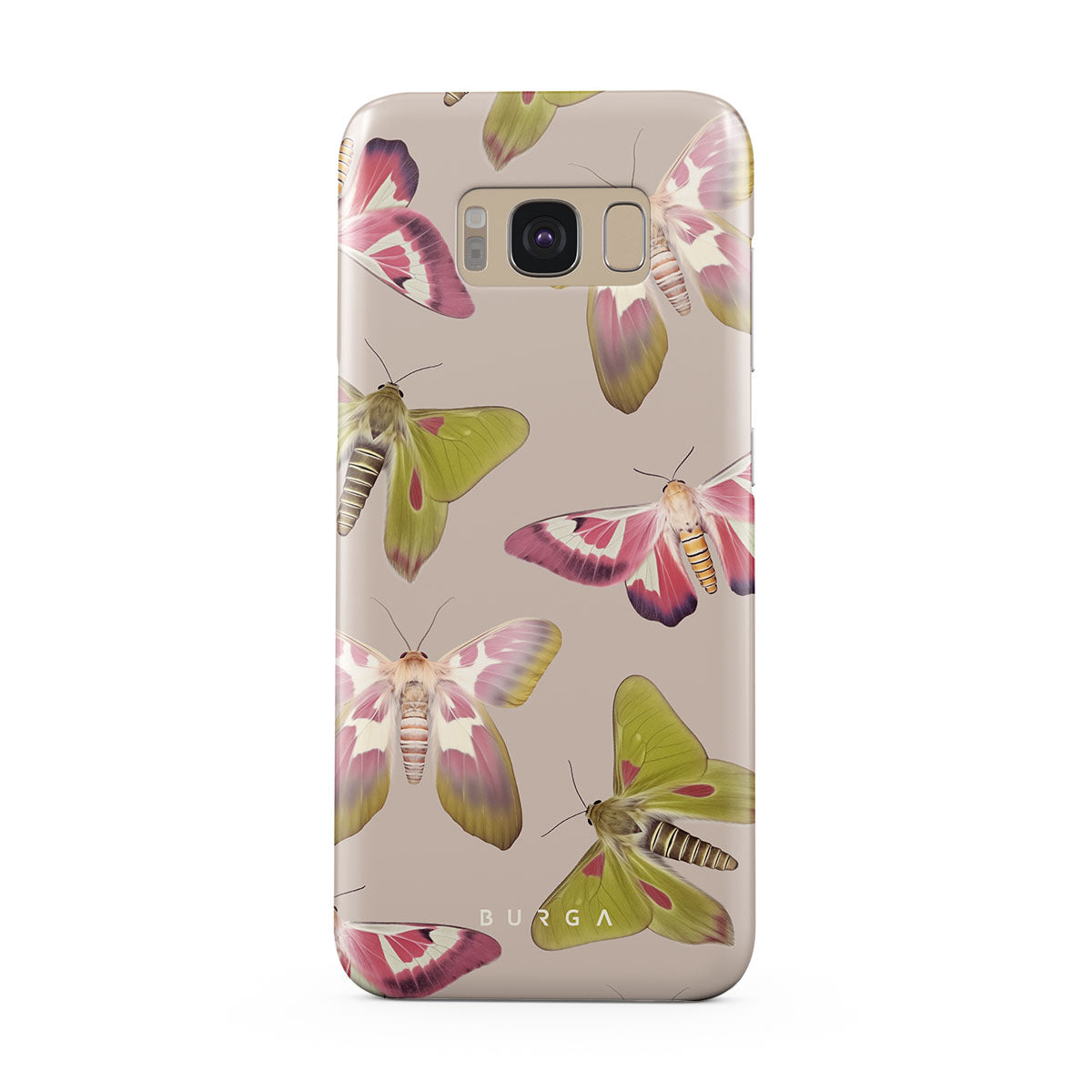 A tapestry of muted-toned moths — their wing patterns echoing tales of transformation and resilience found in nature's delicate beings. These moths, wings wide, serve as silent mentors, teaching us that every phase of life and change holds its own magic and mystery. Discover our Metamorphosis Samsung Galaxy S8 phone casedesign.