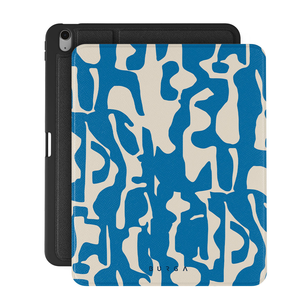 Indulge in the exquisite elegance of Mirage. Against a canvas of deep, enigmatic blue, luminous shapes gracefully disrupt the darkness, creating a captivating visual spectacle. Let this iPad Air 13 (7th/6th Gen) folio case be a symbol of your impeccable taste and magnetic charm.