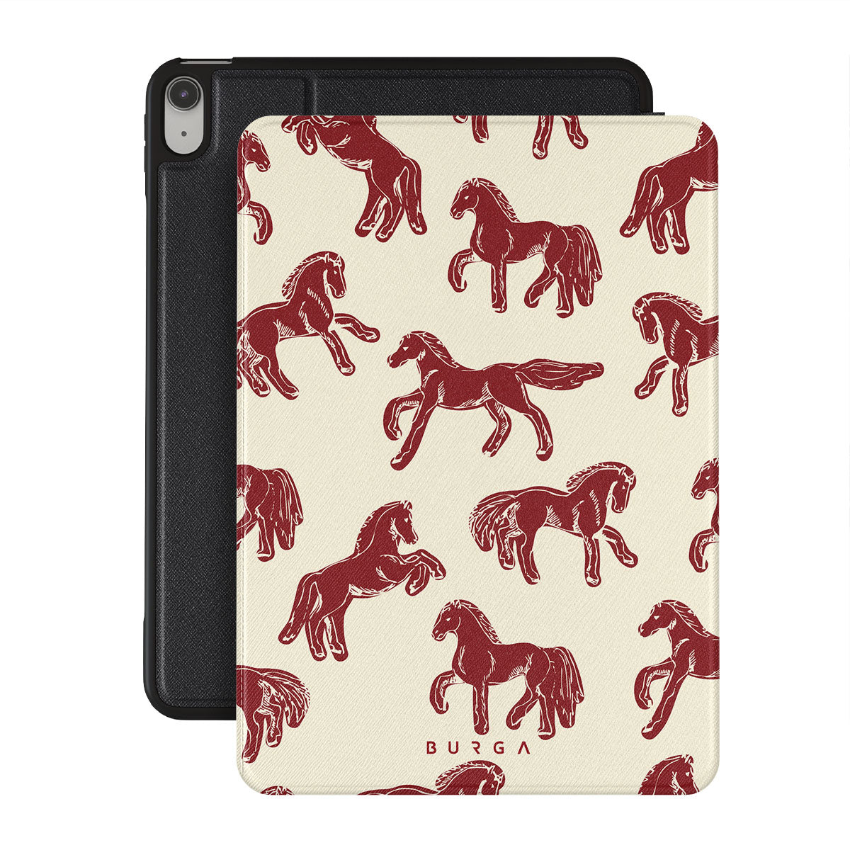 It's time to unleash your wild side with the Mustang design. Bold red horses gallop across a nude background, capturing the spirit of untamed adventure. This iPad 10.9 (10th Gen) folio case is perfect for the free-spirited souls ready to ride into the unknown.