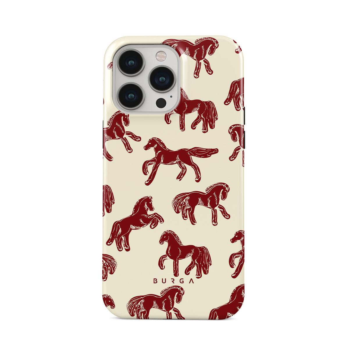 It's time to unleash your wild side with the Mustang design. Bold red horses gallop across a nude background, capturing the spirit of untamed adventure. This iPhone 13 Pro phone case is perfect for the free-spirited souls ready to ride into the unknown.