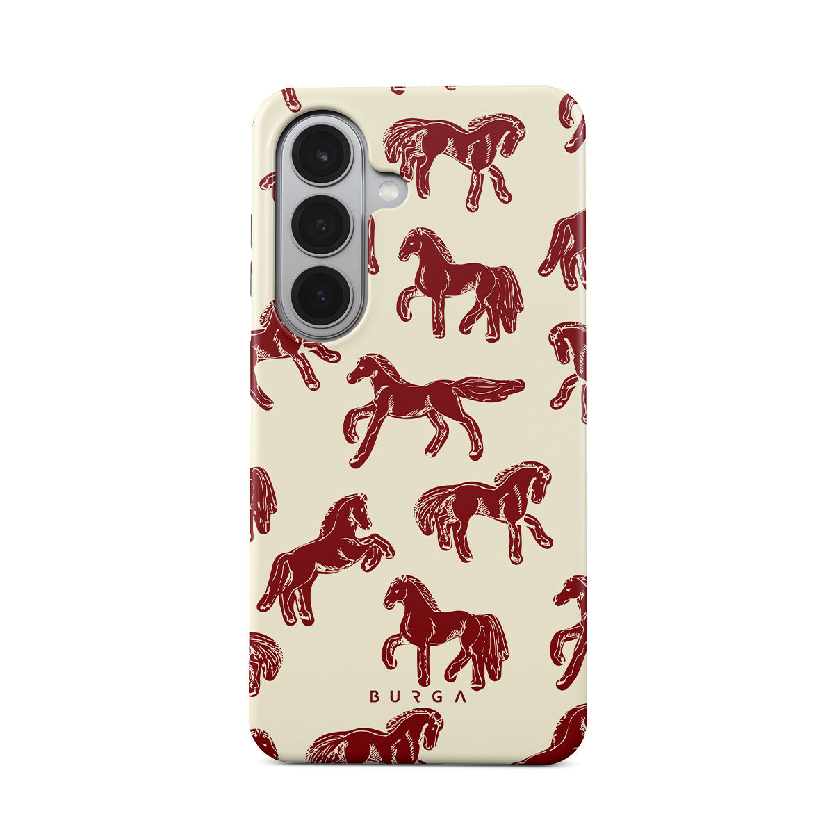 It's time to unleash your wild side with the Mustang design. Bold red horses gallop across a nude background, capturing the spirit of untamed adventure. This Samsung Galaxy S26 phone case is perfect for the free-spirited souls ready to ride into the unknown.