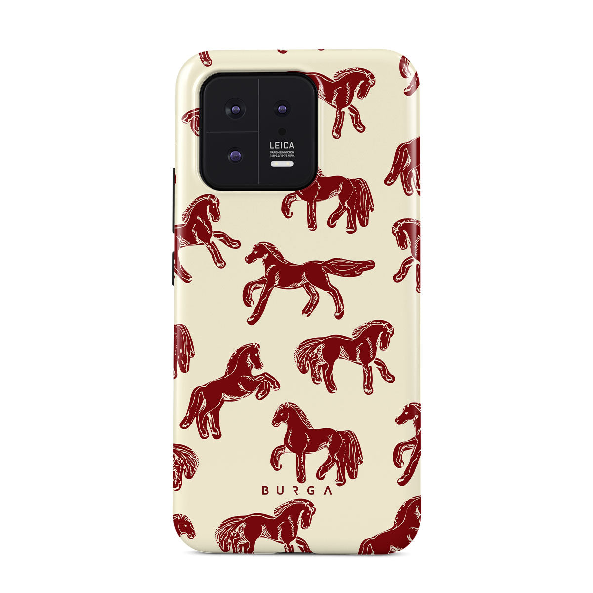 It's time to unleash your wild side with the Mustang design. Bold red horses gallop across a nude background, capturing the spirit of untamed adventure. This Xiaomi 13 phone case is perfect for the free-spirited souls ready to ride into the unknown.