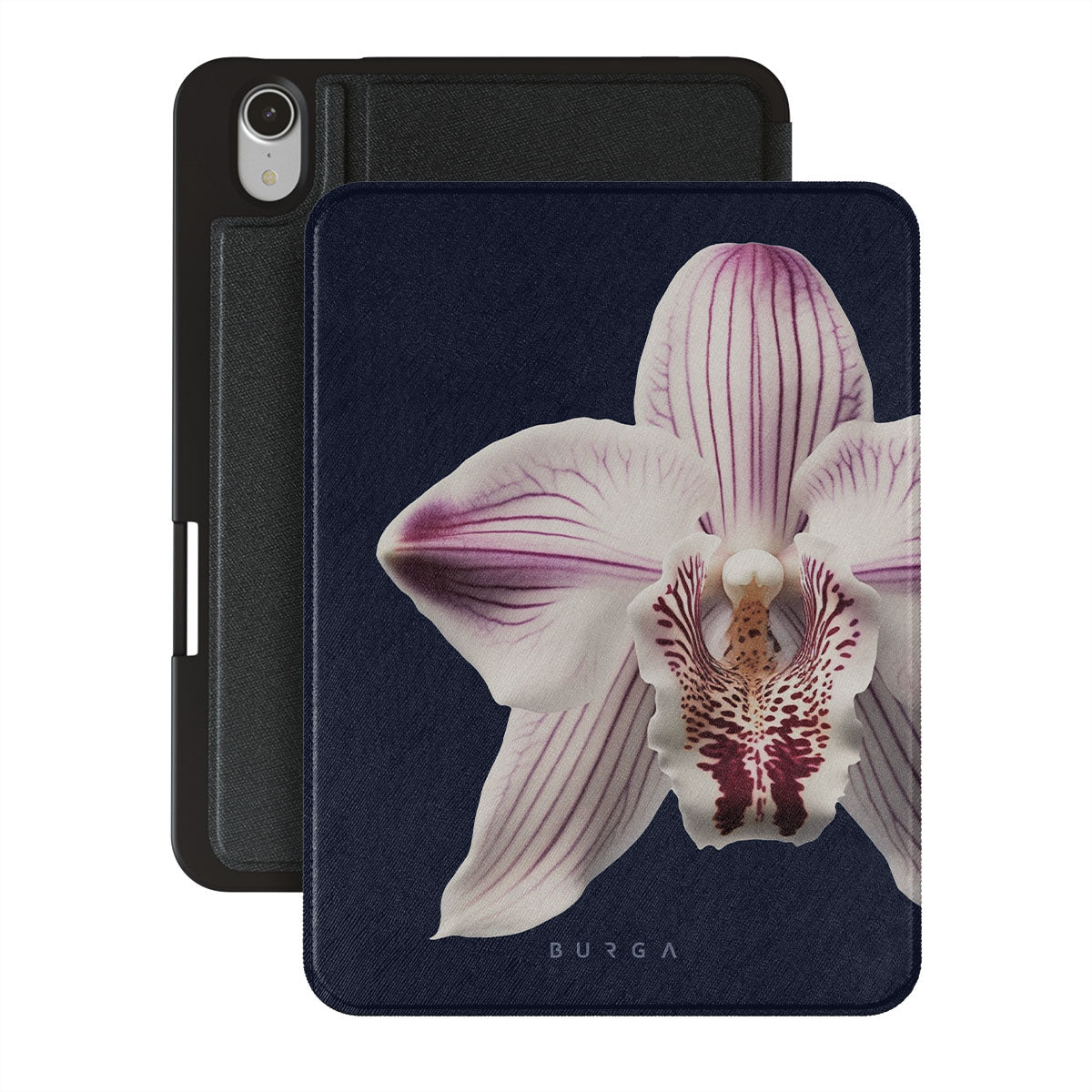 The white orchid blooms boldly upon a night sky blue, a beacon of clarity in the darkness. Our Nectar iPad Mini 8.3 (A17 Pro/6th Gen) 2021 folio case design speaks to the soul's desire to find light within, to illuminate the hidden paths of self-discovery that only reveal themselves under the cloak of introspection.