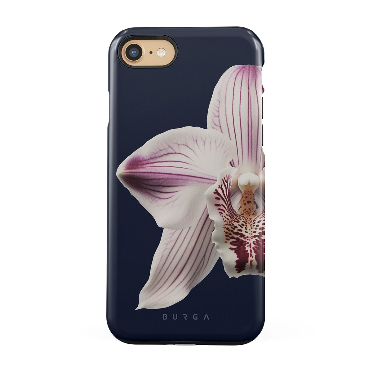 The white orchid blooms boldly upon a night sky blue, a beacon of clarity in the darkness. Our Nectar iPhone 7 / iPhone 8 phone case design speaks to the soul's desire to find light within, to illuminate the hidden paths of self-discovery that only reveal themselves under the cloak of introspection.