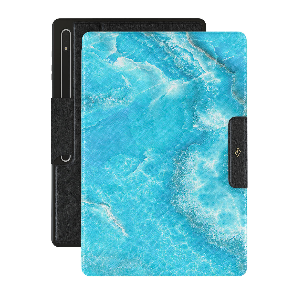 Waves keep crashing down, bringing out lost treasures to the shore. Maybe this one will have the message in the bottle? You may never know what lies in the deeps of the ocean, and our Ocean Waves Samsung Galaxy Tab S10 Ultra folio case brings the mystery in a combination of a stunning blue color and marble pattern. Add protection and color to your Galaxy Tab.