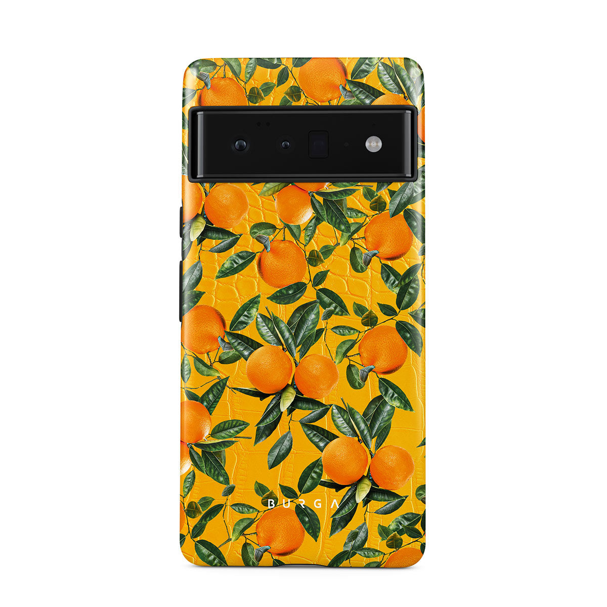 Orange Lemonade Google Pixel 6 Pro phone case showcases a unique combination of vibrant orange croco design with plenty of mouth-watering oranges on top. With this energetic design, protect your phone and keep your spirits up.