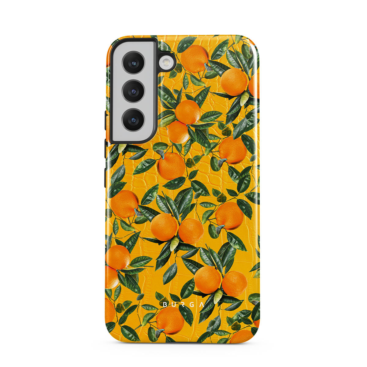 Orange Lemonade Samsung Galaxy S22 phone case showcases a unique combination of vibrant orange croco design with plenty of mouth-watering oranges on top. With this energetic design, protect your phone and keep your spirits up.
