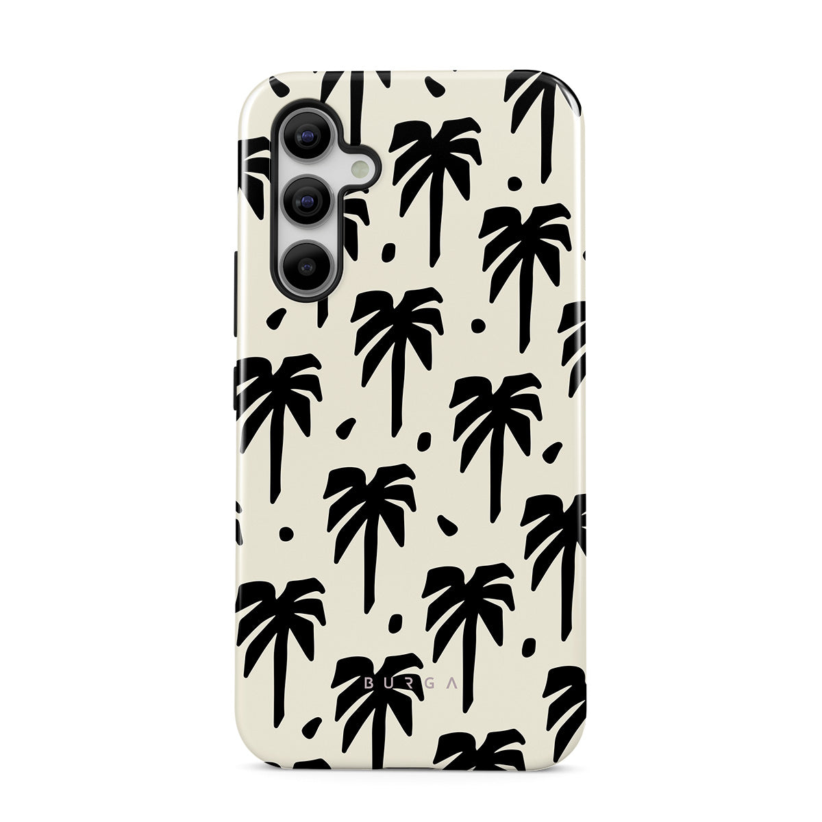 A peaceful haven right at your fingertips. The design contrasts black palm silhouettes against a calming light backdrop. Our Paraíso Samsung Galaxy A55 phone case is your passport to an everlasting tropical escape.