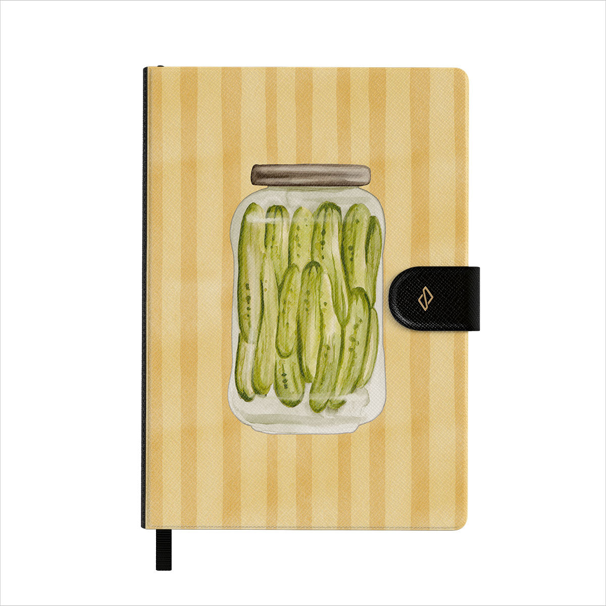 This design features: pickles, pickle jar, vegetables illustration