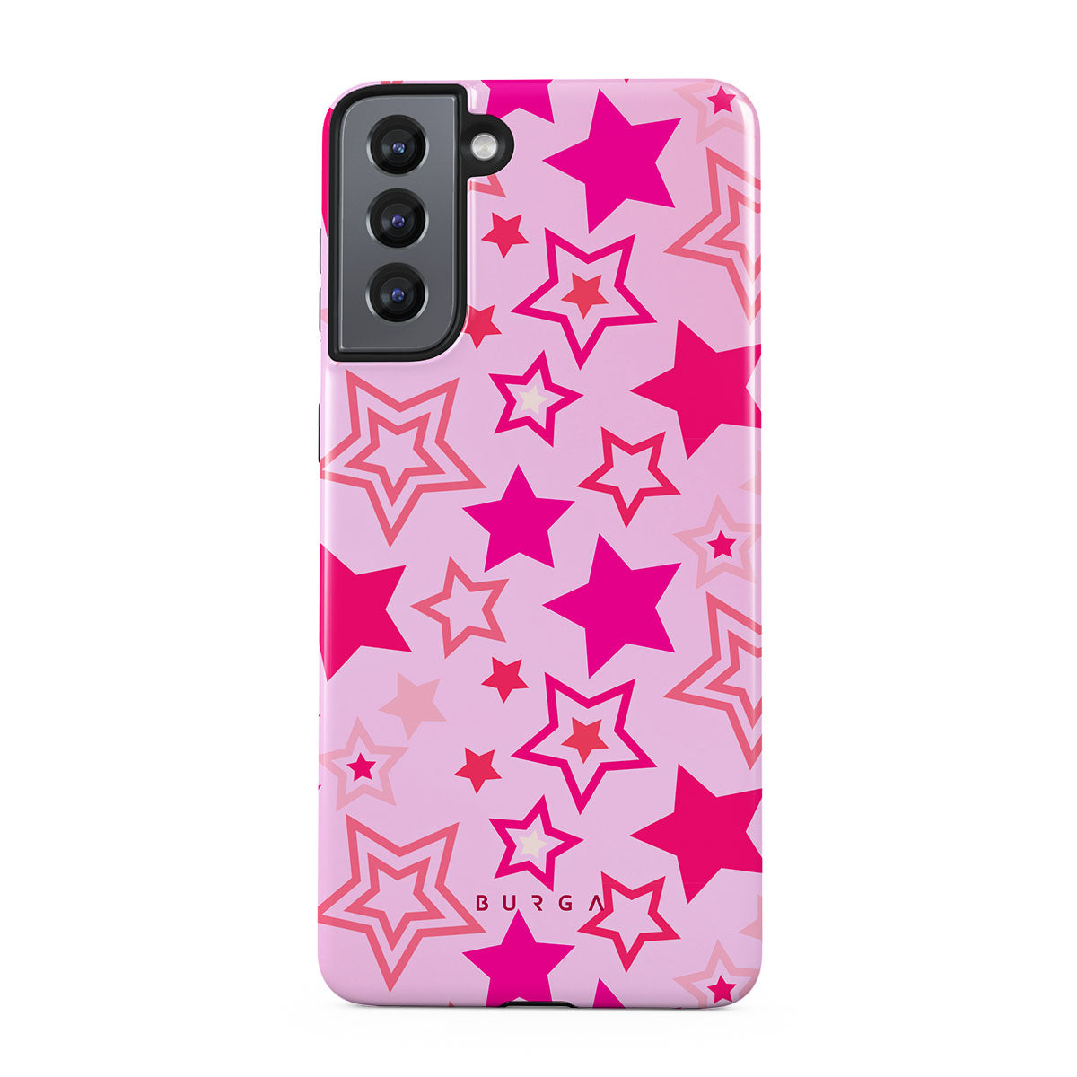 Buckle up for a starry ride, and let's twirl under the Plastic Sky. Neon stars shimmering across a cheeky rose-tinted galaxy create a playful space-disco atmosphere. Be the center of the universe with our Plastic Sky Samsung Galaxy S21 phone case!