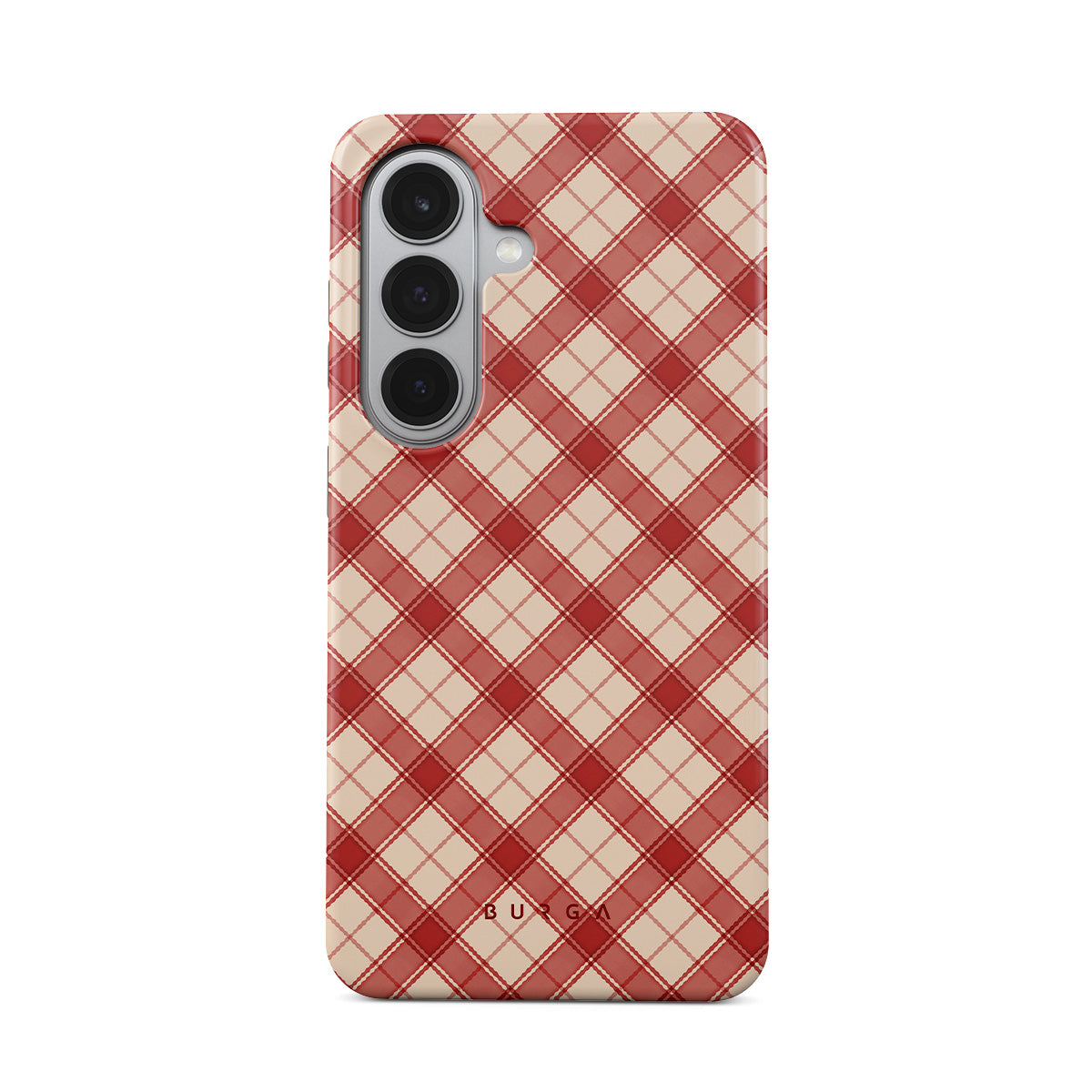This design features: red and tan plaid, diagonal plaid pattern, classic tartan, buffalo check style, traditional Christmas plaid