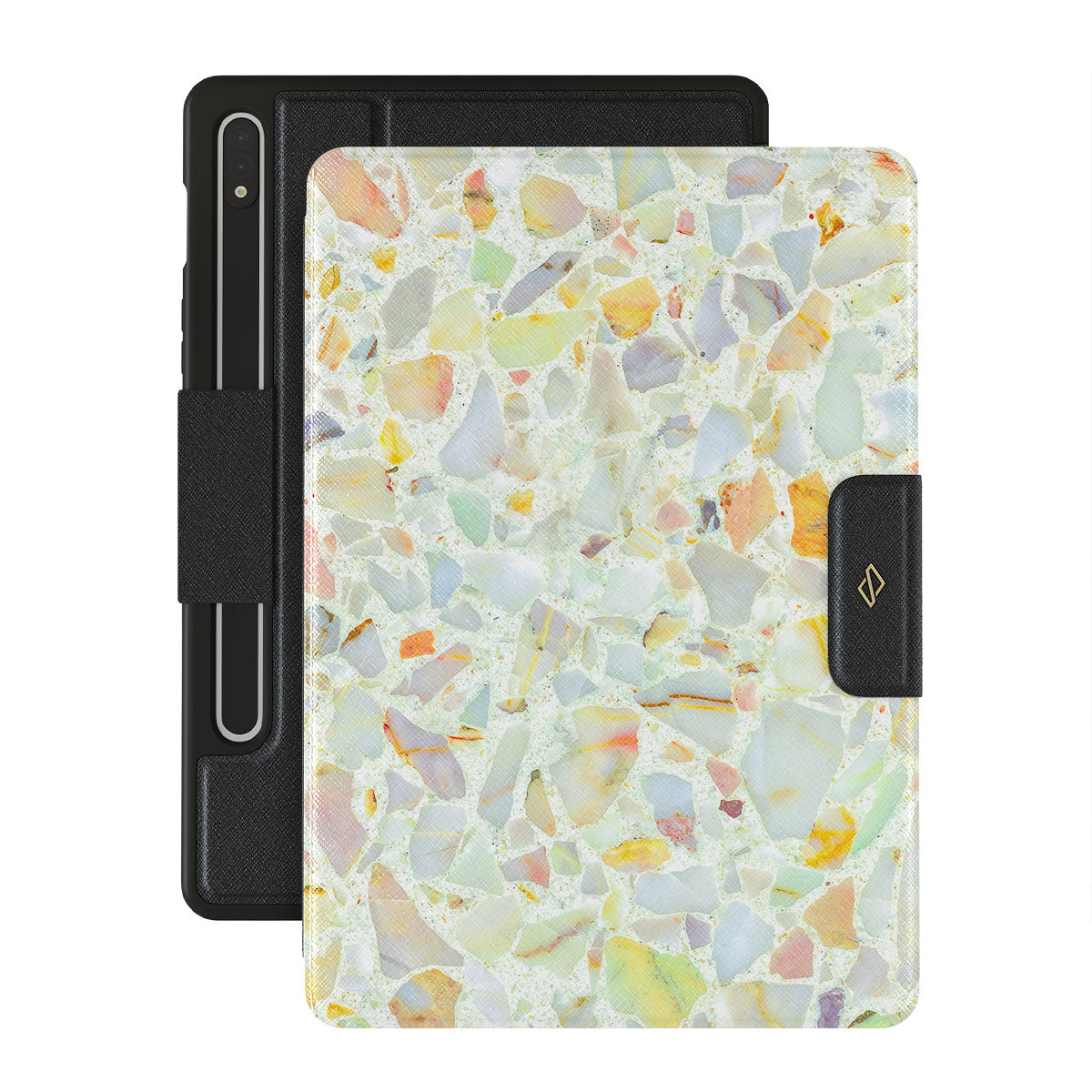 Sun is shining bright, creating rainbows on the path as the light and warm rain just washed the tiles. Walk around barefoot and feel the magic in your steps. Take this summery feeling encased in a cute Samsung Galaxy Tab S9+ FE folio case that is as protective as mesmerizing the rainbow can be.