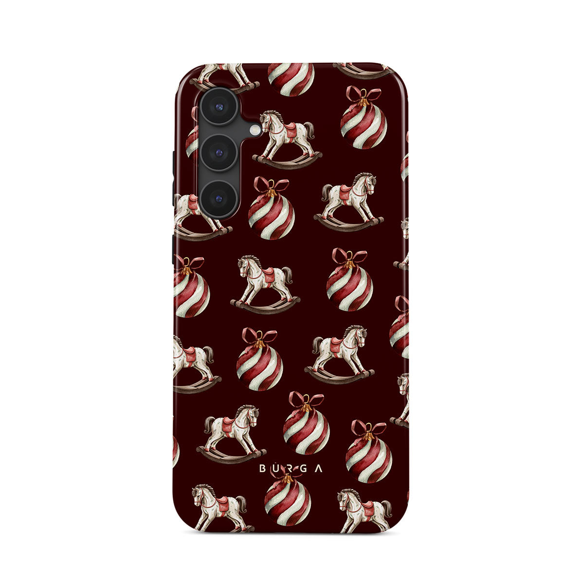 Jingle all the way with this playful Samsung Galaxy S23 FE phone case design. Featuring rocking horses and candy-striped bells, our Rocking Around design transports you back to childhood moments of decorating the tree and waiting for Santa. It’s the ultimate throwback to vintage Christmas charm.