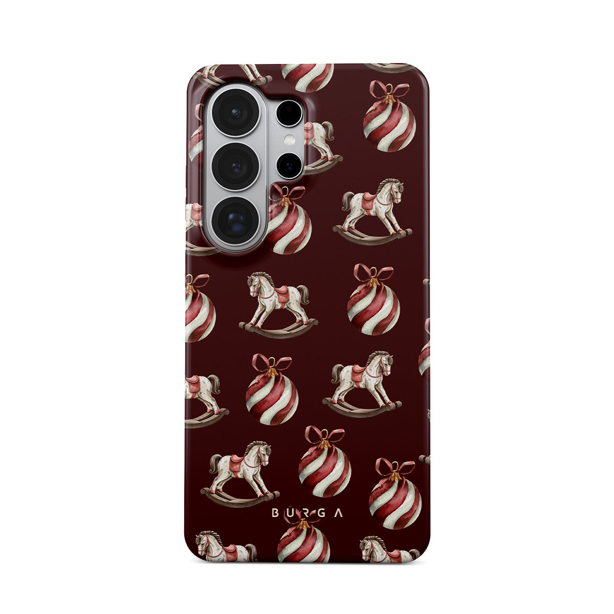 Jingle all the way with this playful Samsung Galaxy S26 Ultra phone case design. Featuring rocking horses and candy-striped bells, our Rocking Around design transports you back to childhood moments of decorating the tree and waiting for Santa. It’s the ultimate throwback to vintage Christmas charm.