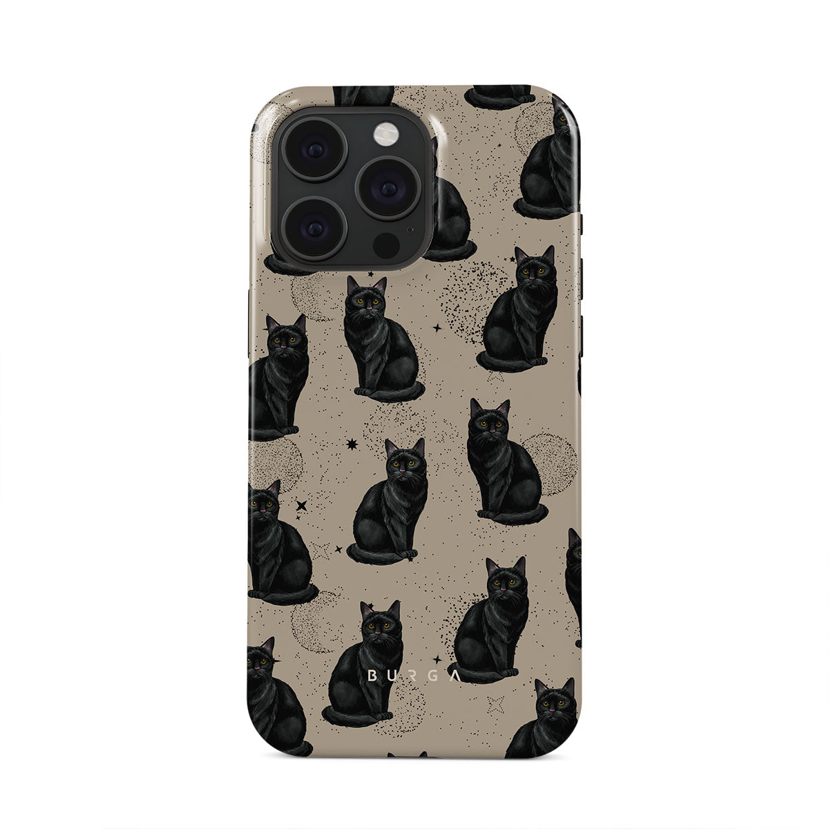 They say black cats are bad luck, but with our Salem iPhone 15 Pro Max phone case design, fortune follows wherever these little guardians go. These cats aren't just symbols; they’re your protectors in the mysterious world of style. Superstitious or not, this one’s got your back.