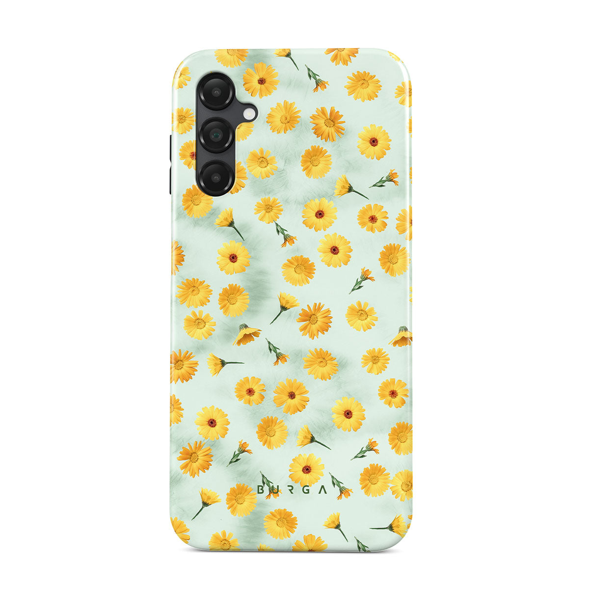 In our Sanctuary of Love Samsung Galaxy A25 phone case, a soft mint marble meets a glowing pattern of yellow flowers that will surely add a splash of energy to your style while protecting your phone from dangerous falls.