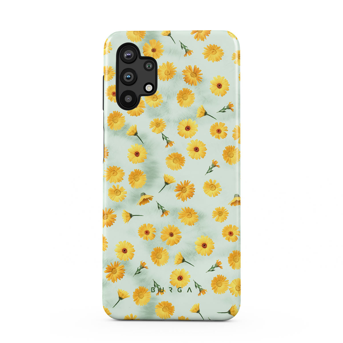 In our Sanctuary of Love Samsung Galaxy A32 5G phone case, a soft mint marble meets a glowing pattern of yellow flowers that will surely add a splash of energy to your style while protecting your phone from dangerous falls.