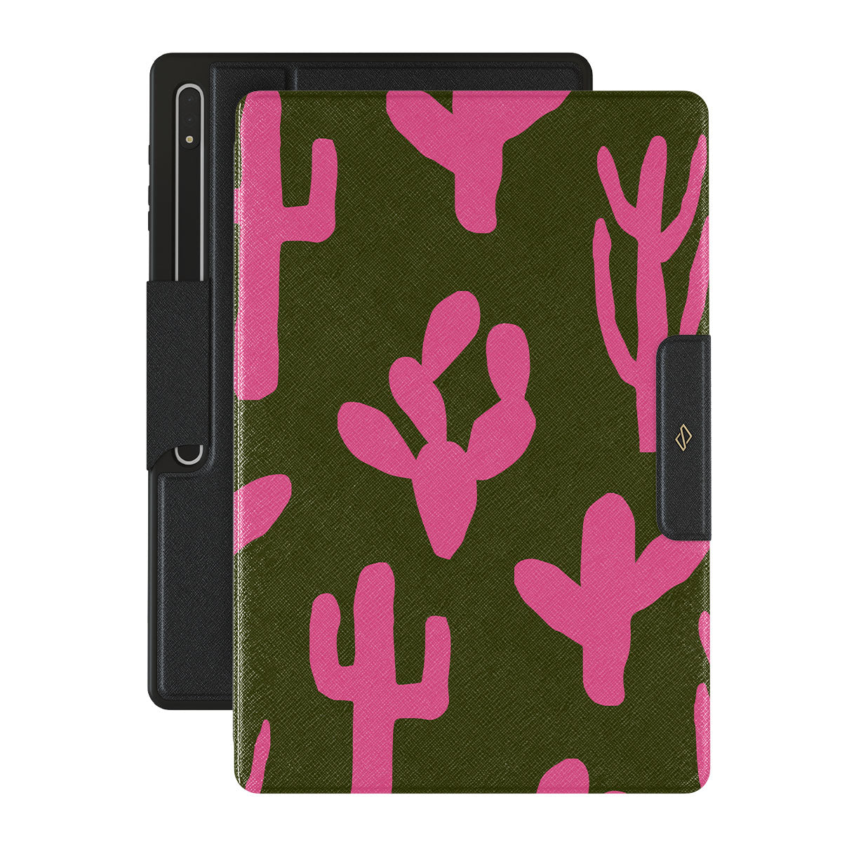 Step into a desert oasis at dusk, where vibrant pink cactuses bloom against a mysterious dark background. Serenade is a poetic fusion of resilience and beauty, turning your Samsung Galaxy Tab S9 Ultra folio case into a sanctuary of tranquility amidst the chaos of everyday life.