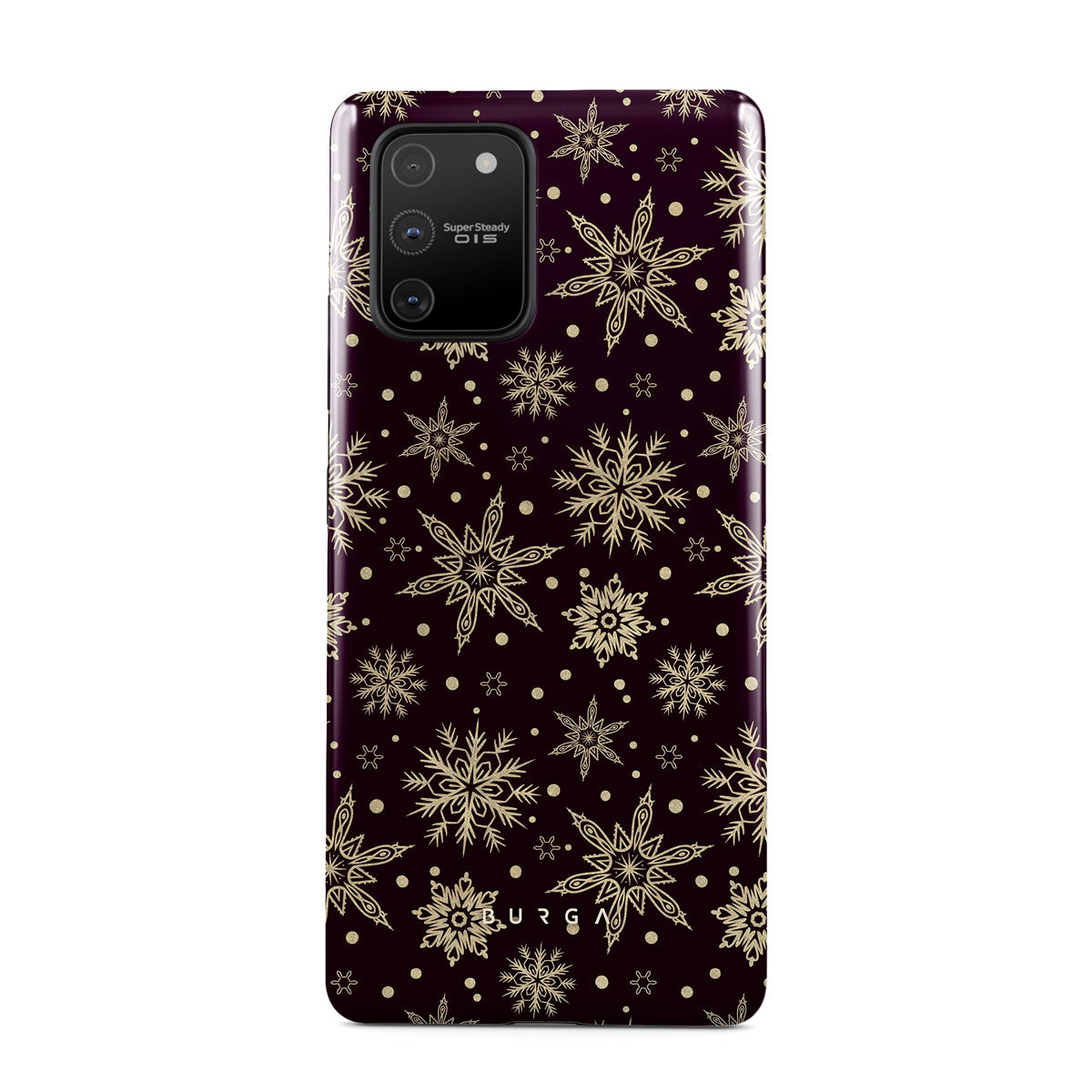 Magical, mythical, and mesmerizing, our Sleeping Beauty Samsung Galaxy S10 Lite phone case is precisely that. The deep burgundy background emphasizes the elegance of the intricate patterns of golden snowflakes. Add a touch of expensive elegance to your device while keeping it safe from all the dangerous falls.