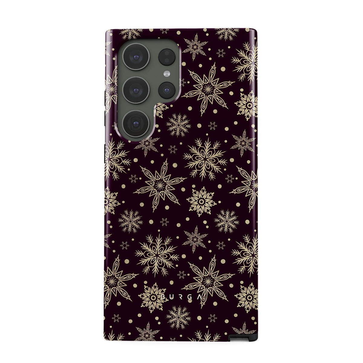 Magical, mythical, and mesmerizing, our Sleeping Beauty Samsung Galaxy S23 Ultra phone case is precisely that. The deep burgundy background emphasizes the elegance of the intricate patterns of golden snowflakes. Add a touch of expensive elegance to your device while keeping it safe from all the dangerous falls.