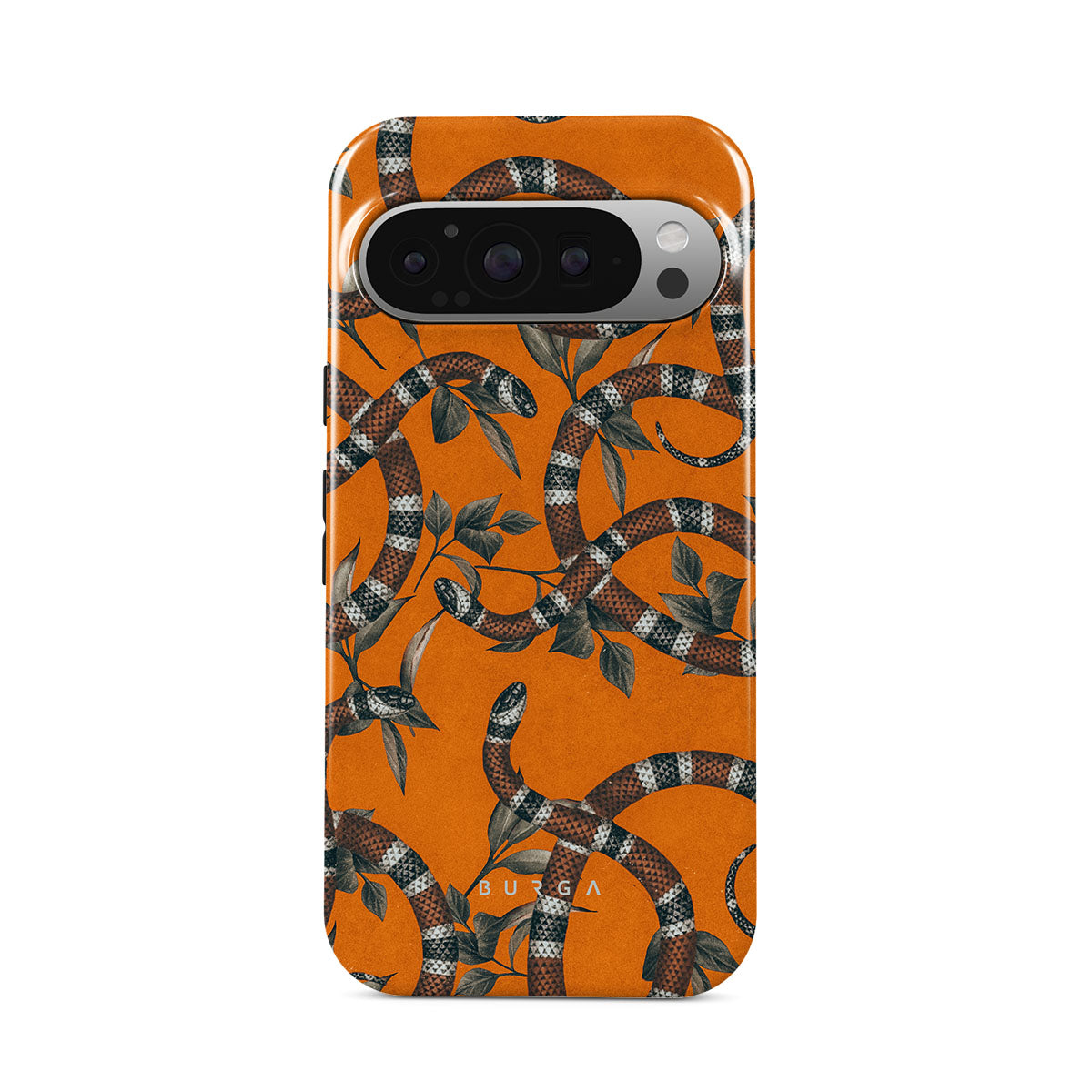 Take a bit of fierceness with yourself with our bright orange and dangerously beautiful Google Pixel 9 Pro phone case with a snake pattern. This case is real eye candy for fashion lovers and just as needed for those who strive to keep their phones protected.