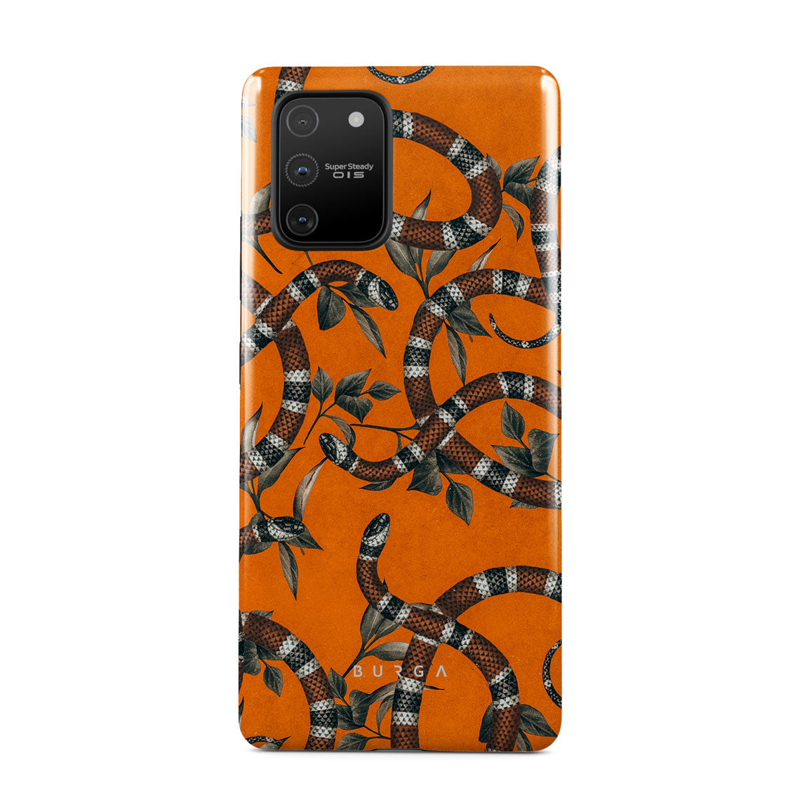 Take a bit of fierceness with yourself with our bright orange and dangerously beautiful Samsung Galaxy S10 Lite phone case with a snake pattern. This case is real eye candy for fashion lovers and just as needed for those who strive to keep their phones protected.