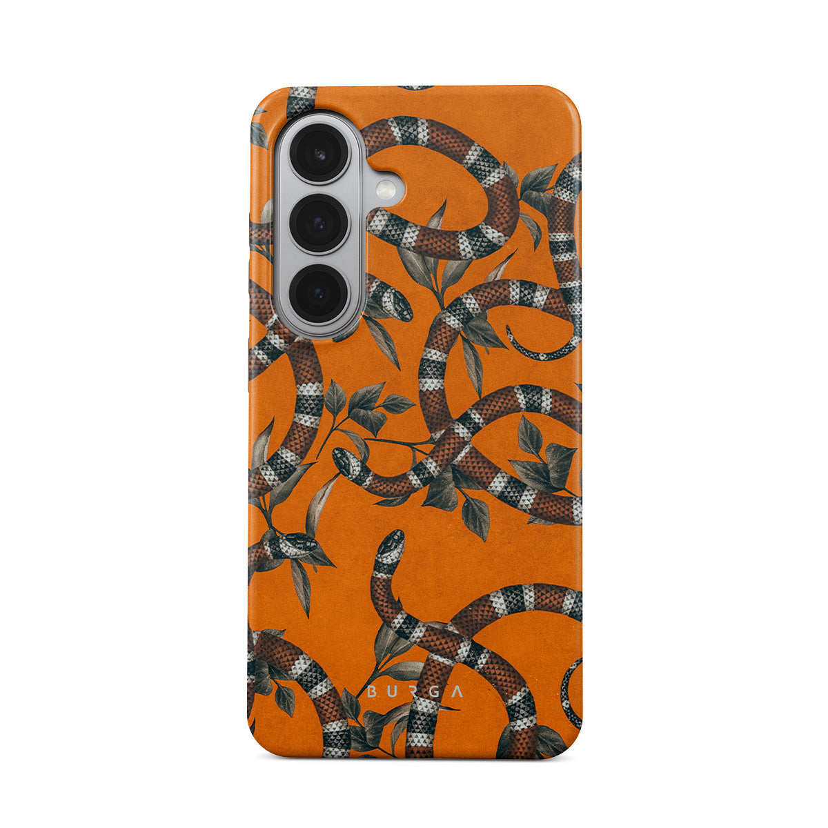 Take a bit of fierceness with yourself with our bright orange and dangerously beautiful Samsung Galaxy S26 Plus phone case with a snake pattern. This case is real eye candy for fashion lovers and just as needed for those who strive to keep their phones protected.