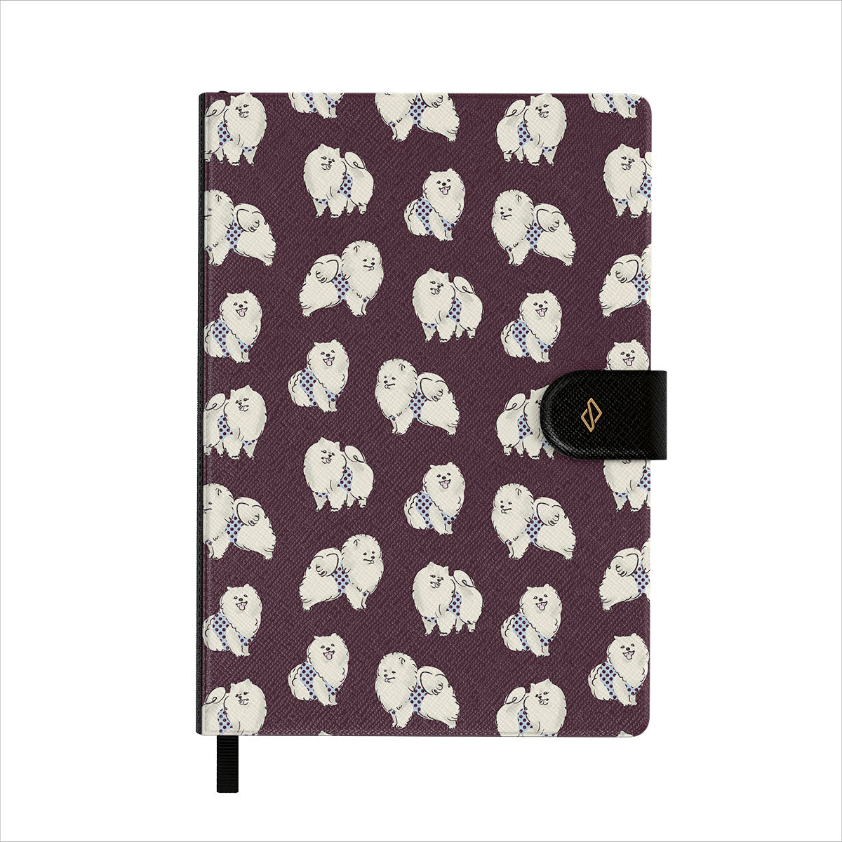 Features well-detailed BURGA patterns to a vegan faux leather front cover. Topped with an elegant black ribbon page marker.