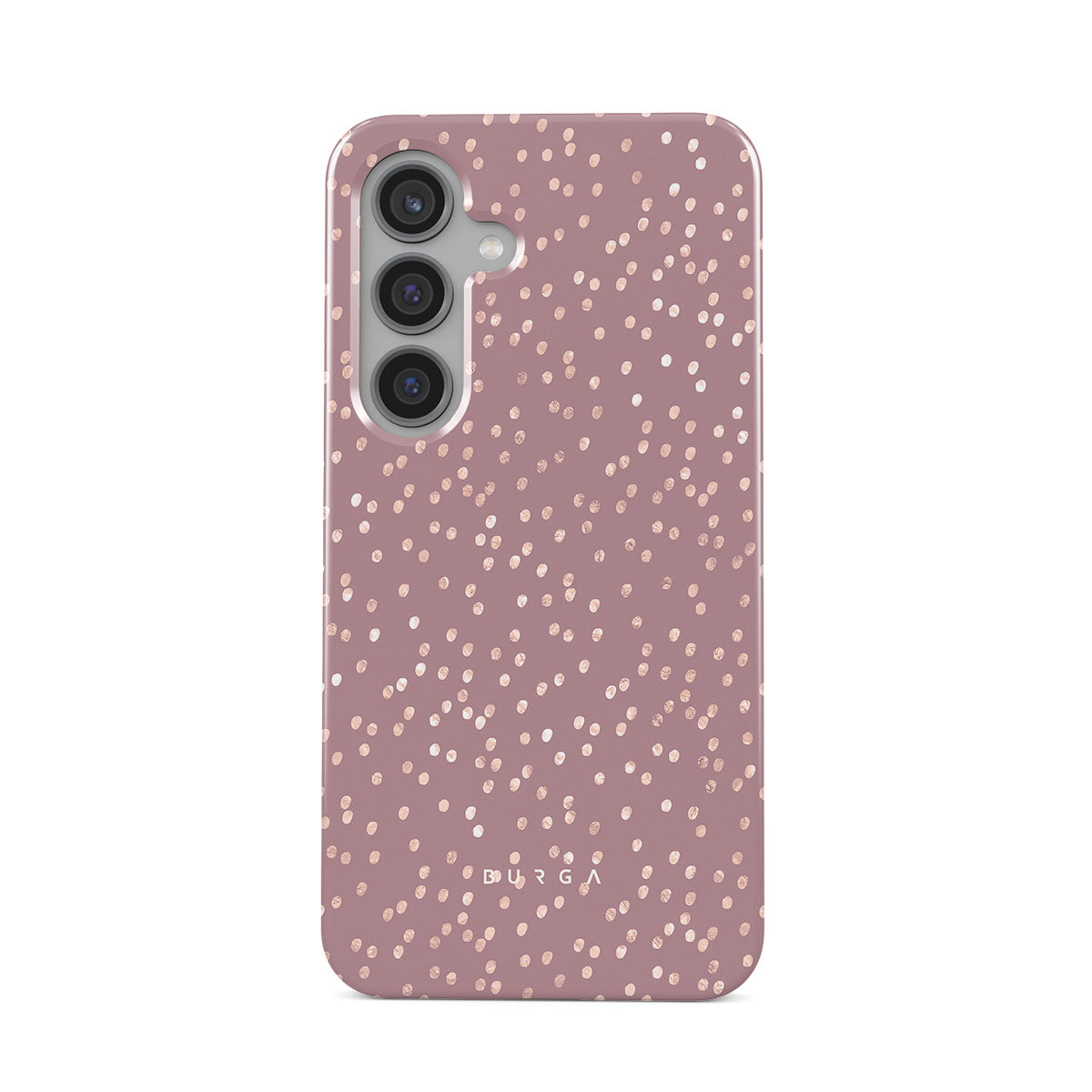 Trendy mauve color as a background for the gold-colored spots creates true beauty. Make your Samsung Galaxy S24 stand out with our protective and pretty Hot Cocoa phone case. The spotted pattern adds a touch of luxury to your phone, while the case's hard-shell nature offers much-needed protection.