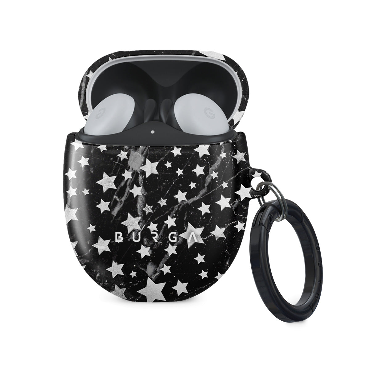 The charming star pattern of our Starry Night Google Pixel Buds 2 case cover meets with a trendy black and white marble. The unique combination creates a design that will transform your Google Pixel Buds 2 case from a plain one to one ready to slay in the fashion world. Our case fits perfectly snug around Google Pixel Buds 2 . “Like a glove!” one might say. And it won’t disrupt the wireless charging capabilities of the newer model. There’s even an LED light indicator to prove it (don’t worry, wired charging still works, too). When fitted, the BURGA case will protect the delicate Google Pixel Buds 2 case beneath it from scratches, bumps, and drops while remaining scratch-free itself. Our signature design pattern prints are High Quality, and will never peel or fade away- thanks to our unique printing technology. And finally, a handy carabiner is there to make your life easier and more convenient: just snap it around your keys or belt loop and tackle the day head-on. Your music is right there by your side when you need it.