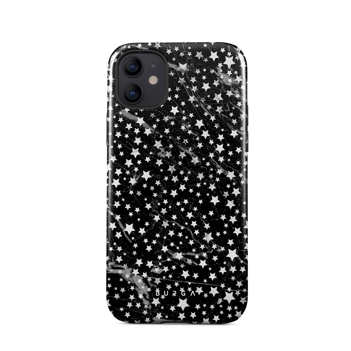 iPhone 12 phone case is inspired by the sky above us. Here the charming star pattern meets with a trendy black and white marble. Add the unique combination to your wardrobe and transform your protective phone case into a fashion accessory.