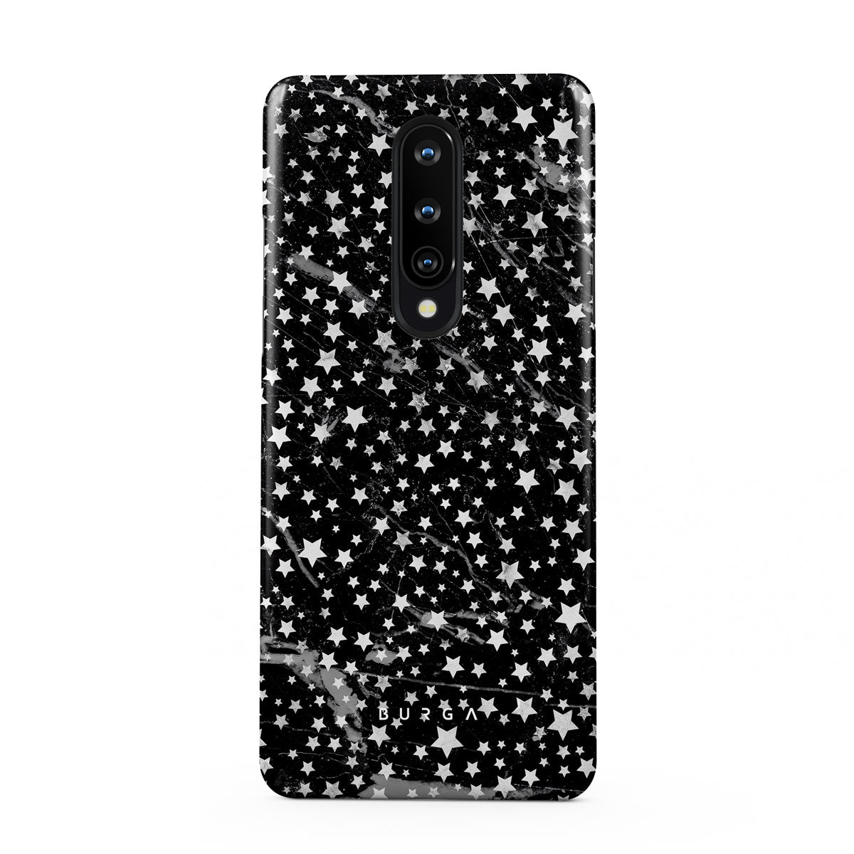 OnePlus 8 phone case is inspired by the sky above us. Here the charming star pattern meets with a trendy black and white marble. Add the unique combination to your wardrobe and transform your protective phone case into a fashion accessory.