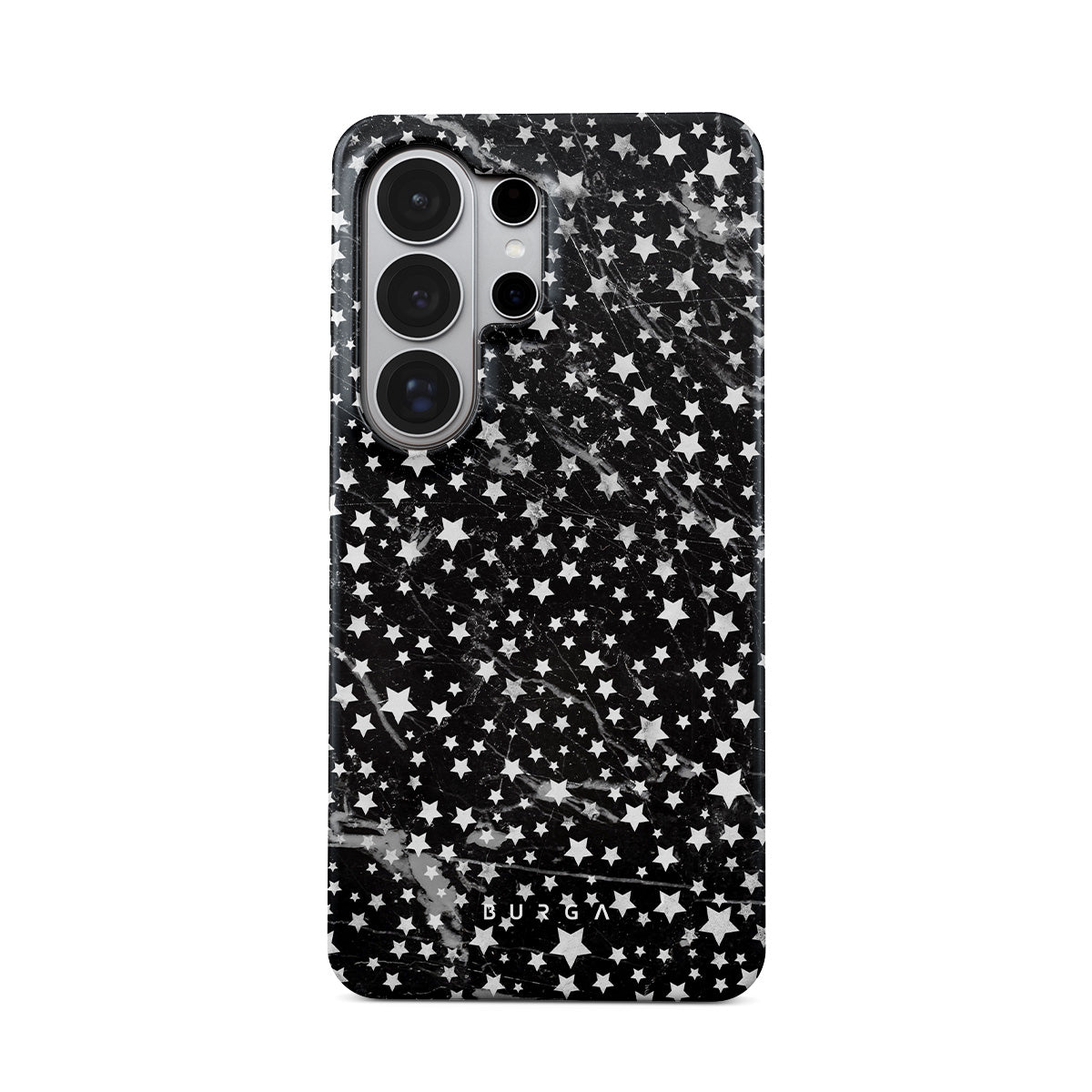 Samsung Galaxy S26 Ultra phone case is inspired by the sky above us. Here the charming star pattern meets with a trendy black and white marble. Add the unique combination to your wardrobe and transform your protective phone case into a fashion accessory.