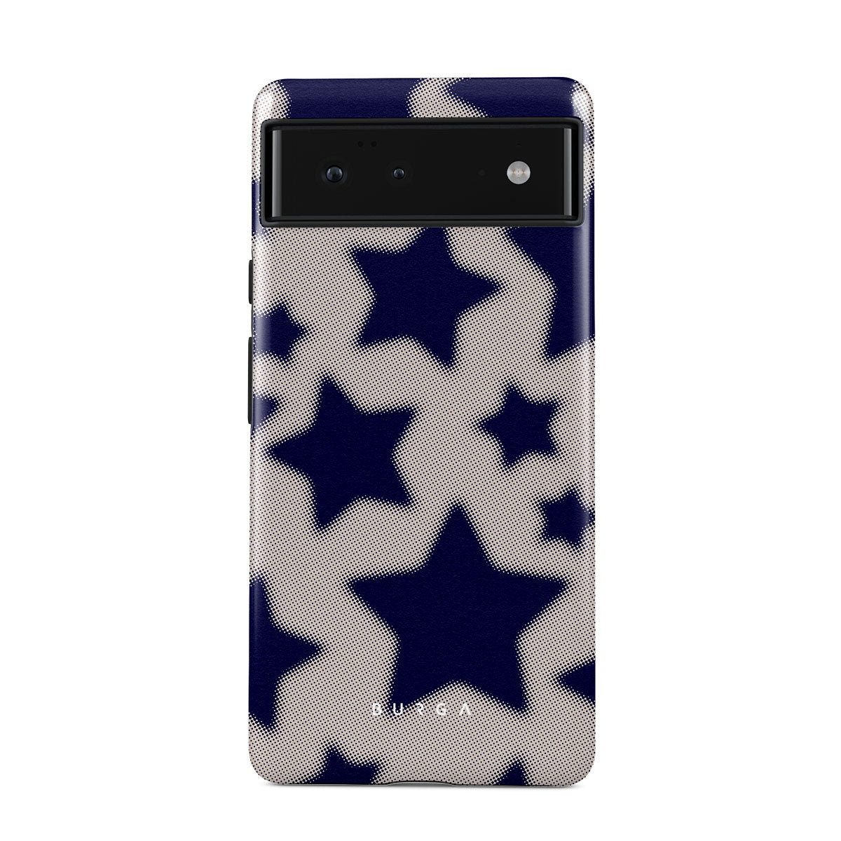 Rock a touch of '90s nostalgia with the Starstruck Google Pixel 6a phone case design. Its nude background is scattered with bold blue stars; each star hints at stories of hope and youthful dreams, blending simplicity with depth.