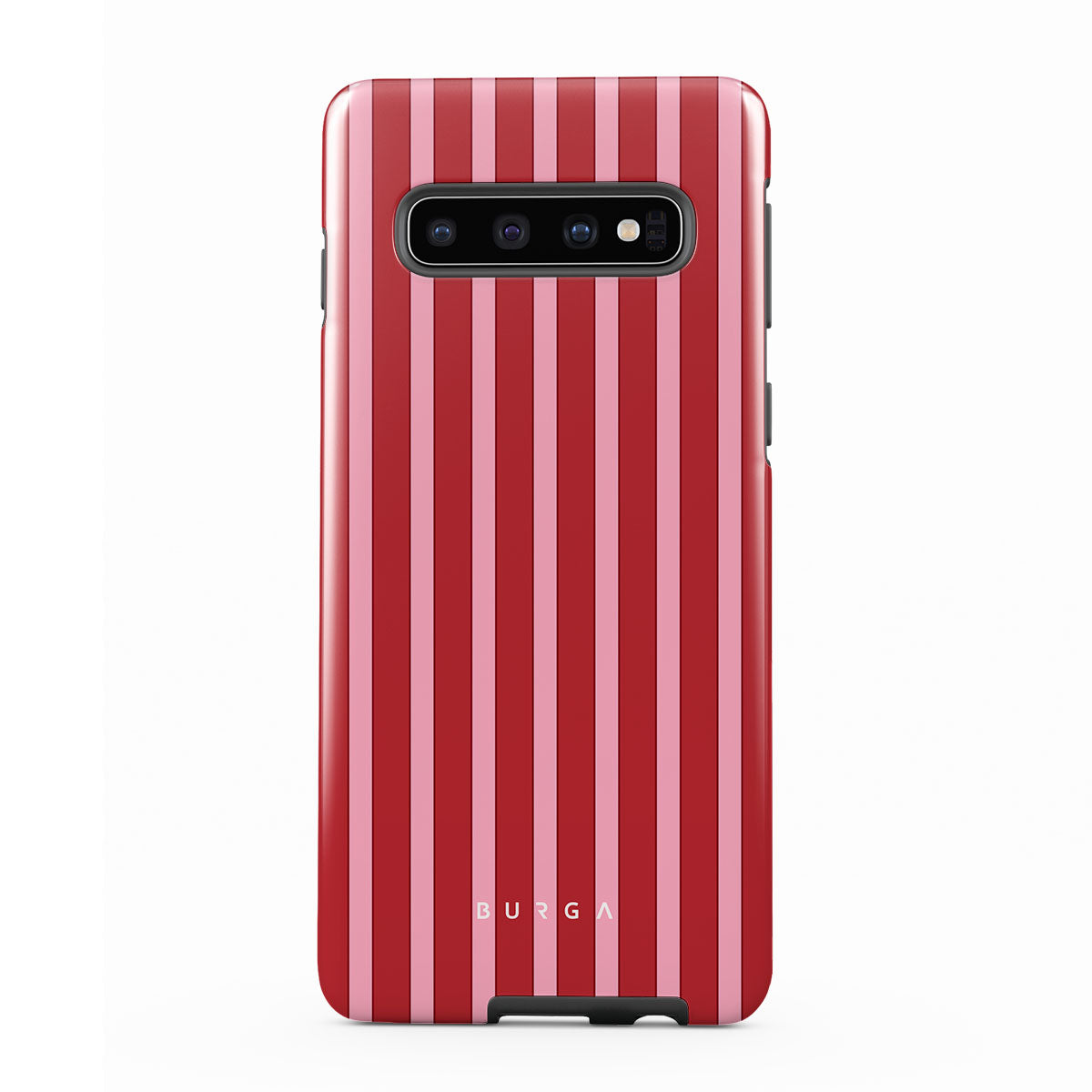Stripes of red, like strawberry swirls on toast, this Samsung Galaxy S10 Plus phone case design brings the sweet memory of breakfasts that start with a spread of homemade love.