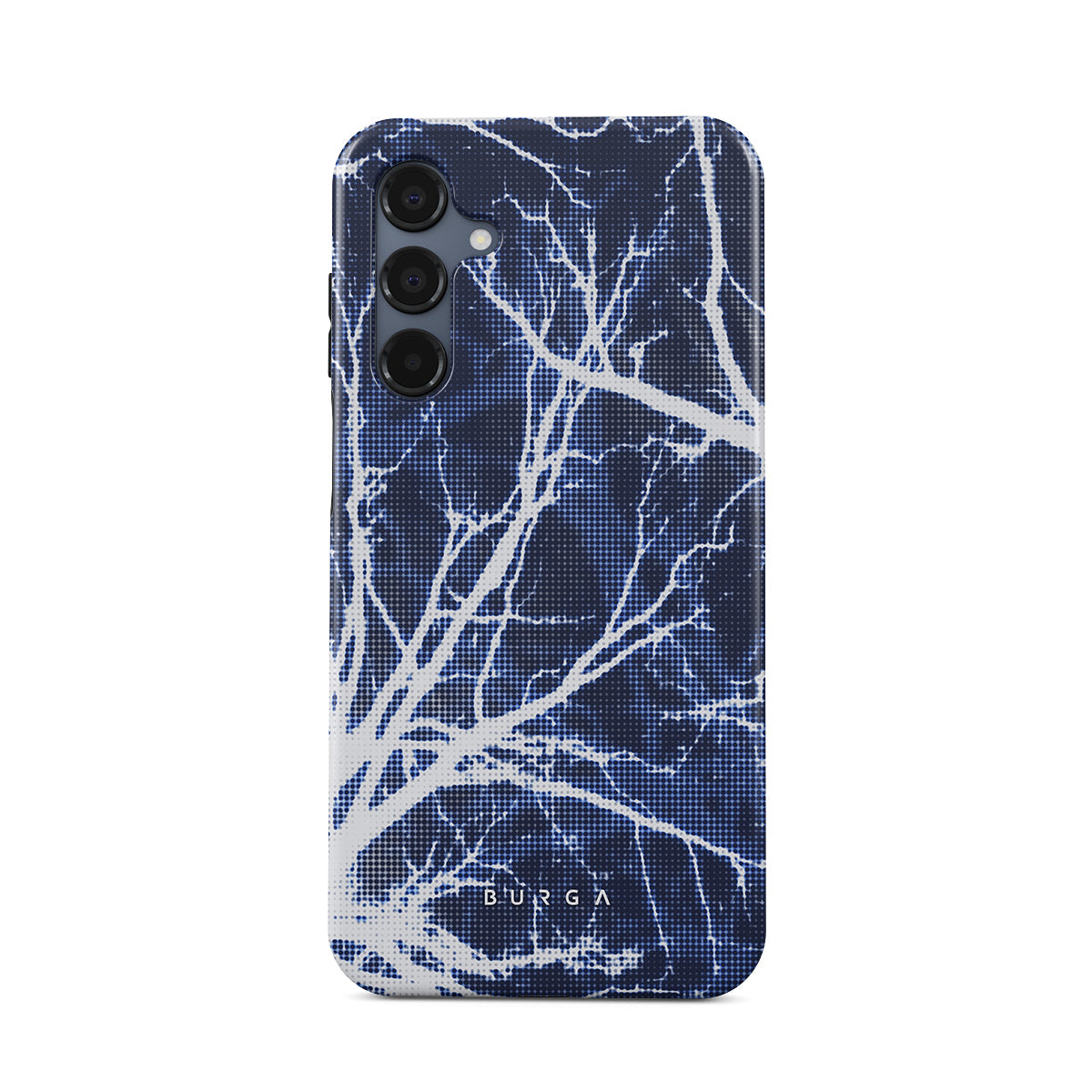 This design features: blue, tree branches, nature, geometric pattern, minimalistic