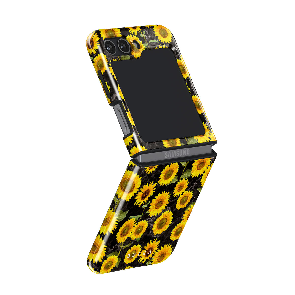 With our Sunflower Glimmer Samsung Galaxy Z Flip 5 phone case, you can have a bit of sunshine in your pocket. Let the flower pattern bring inspiration and warmth to your everyday life, and also, do not forget the ultimate plus: heavy-duty protection that our case offers for your phone!