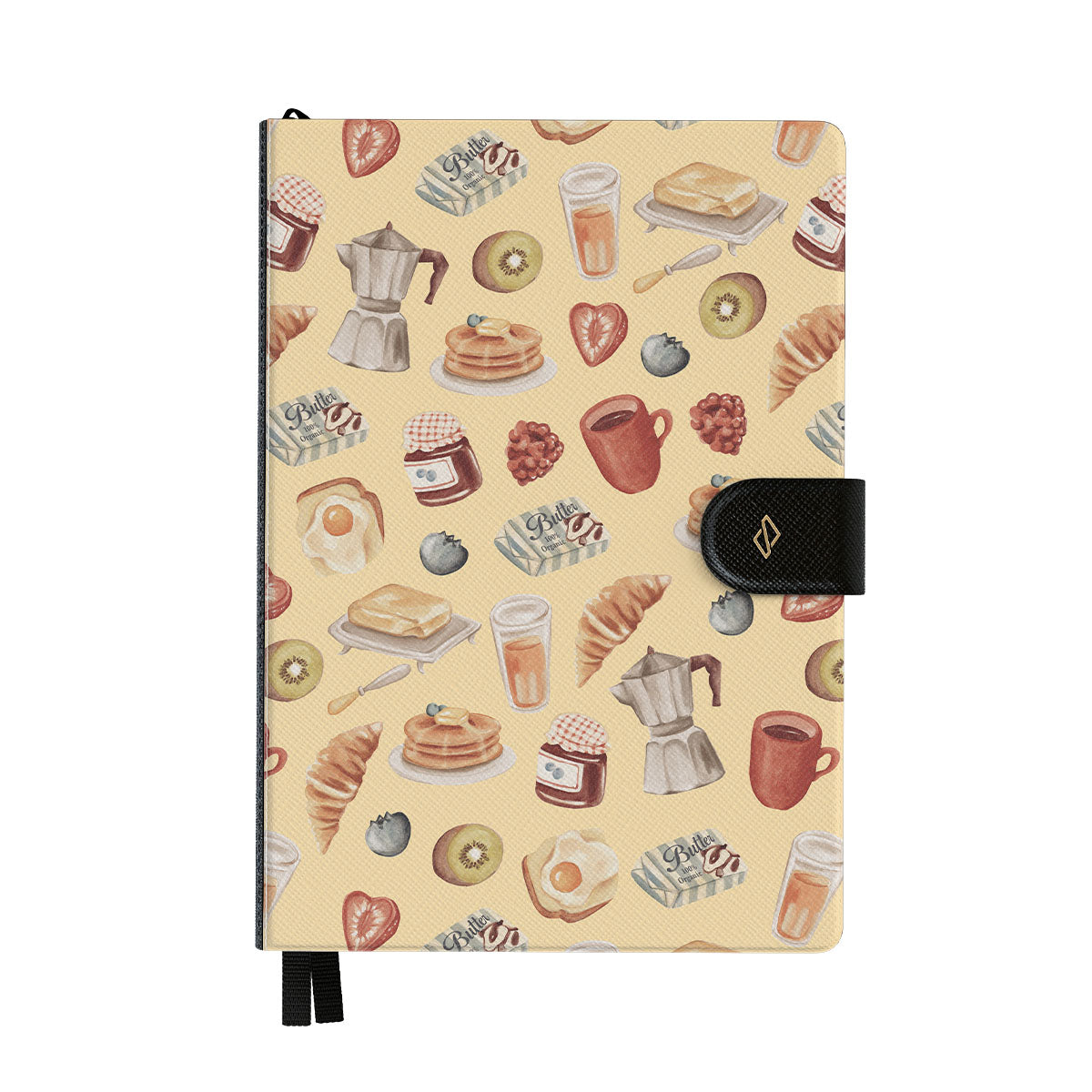 Wrapped in sleek vegan saffiano leather and secured with a sleek magnetic clasp, it's durable enough to handle coffee spills and life's little oops moments.