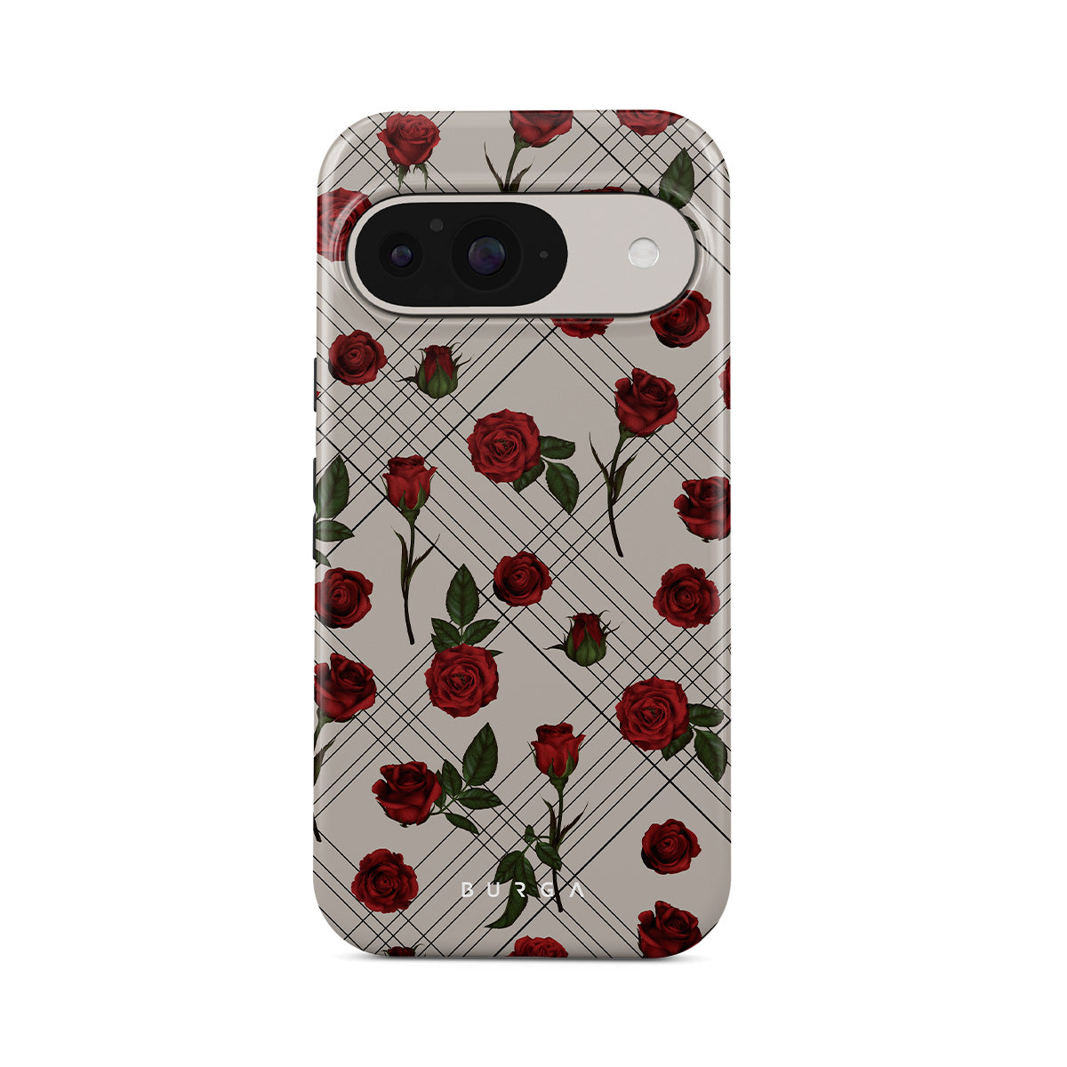 Embrace the subtle rebellion of our Sweet Sin Google Pixel 10 Pro phone case design. On a muted nude-gray canvas, scattered small red roses hint at passions hidden beneath the surface. A design that balances the delicate with the daring. Crafted for those who find beauty in the unexpected and wear their edge with elegance.