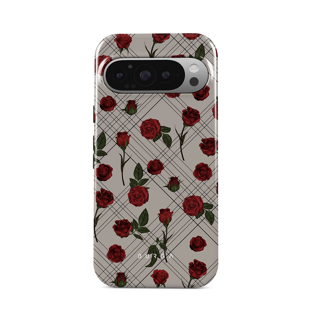 Embrace the subtle rebellion of our Sweet Sin Google Pixel 9 Pro XL phone case design. On a muted nude-gray canvas, scattered small red roses hint at passions hidden beneath the surface. A design that balances the delicate with the daring. Crafted for those who find beauty in the unexpected and wear their edge with elegance.