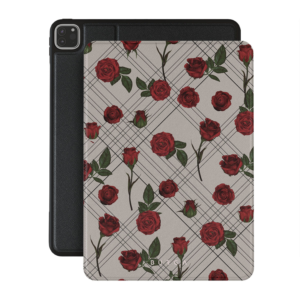 Embrace the subtle rebellion of our Sweet Sin iPad Pro 12.9 (6th/5th Gen) folio case design. On a muted nude-gray canvas, scattered small red roses hint at passions hidden beneath the surface. A design that balances the delicate with the daring. Crafted for those who find beauty in the unexpected and wear their edge with elegance.