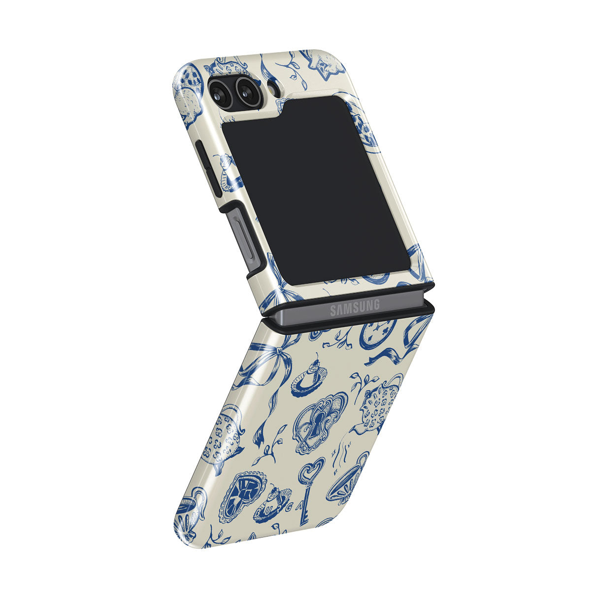 The Tea Party Samsung Galaxy Z Flip 5 phone case design is a porcelain puzzle—ribbons tangled, time warped, rules rewritten. Sit down, pour a cup, but don’t expect things to make sense. They never do.