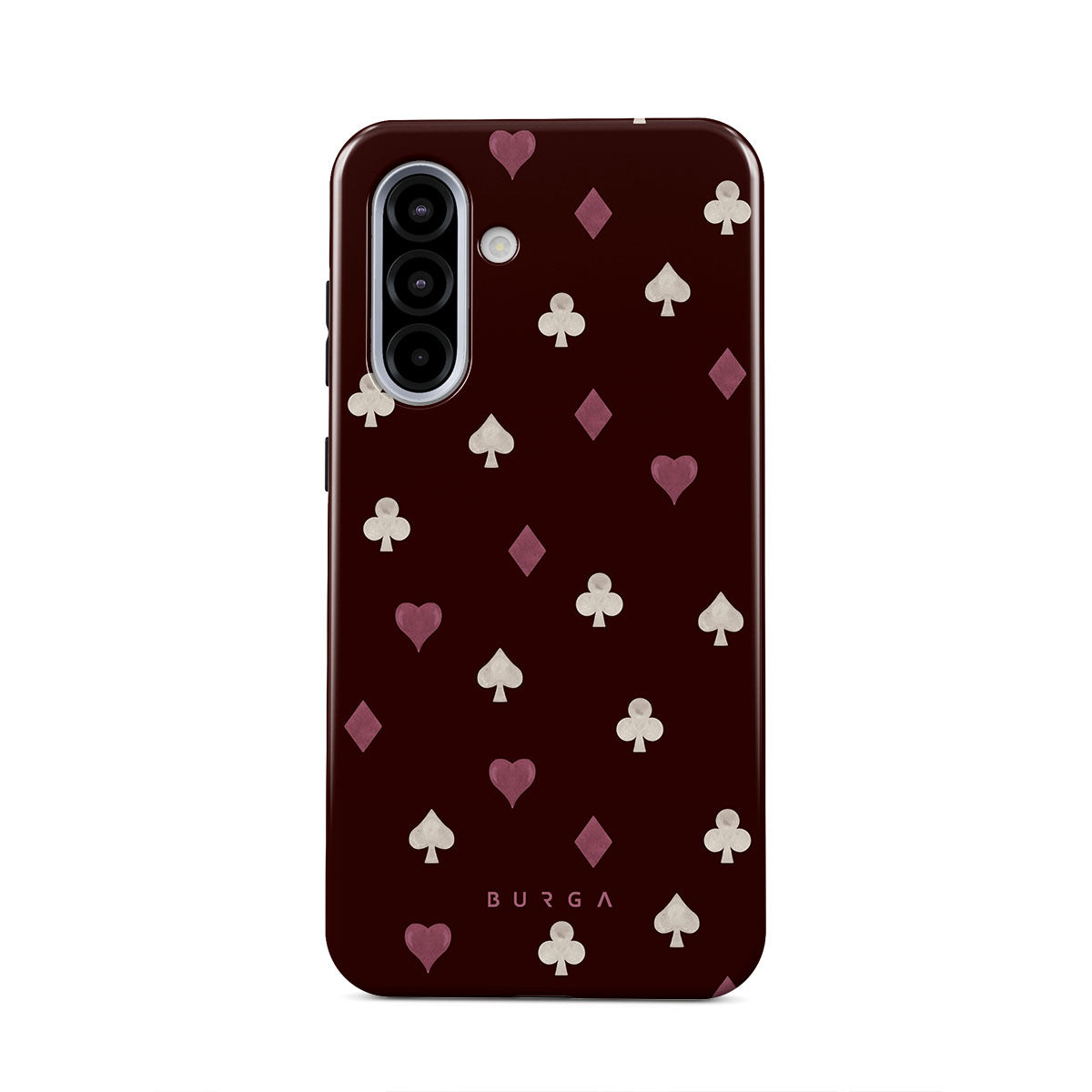 Nothing is as it appears. Hearts, clubs, diamonds, and spades—stacked in your favor or playing against you? This Samsung Galaxy A56 5G phone case design features a rich burgundy background and minimalist suits that make for a game where the rules are constantly shifting.